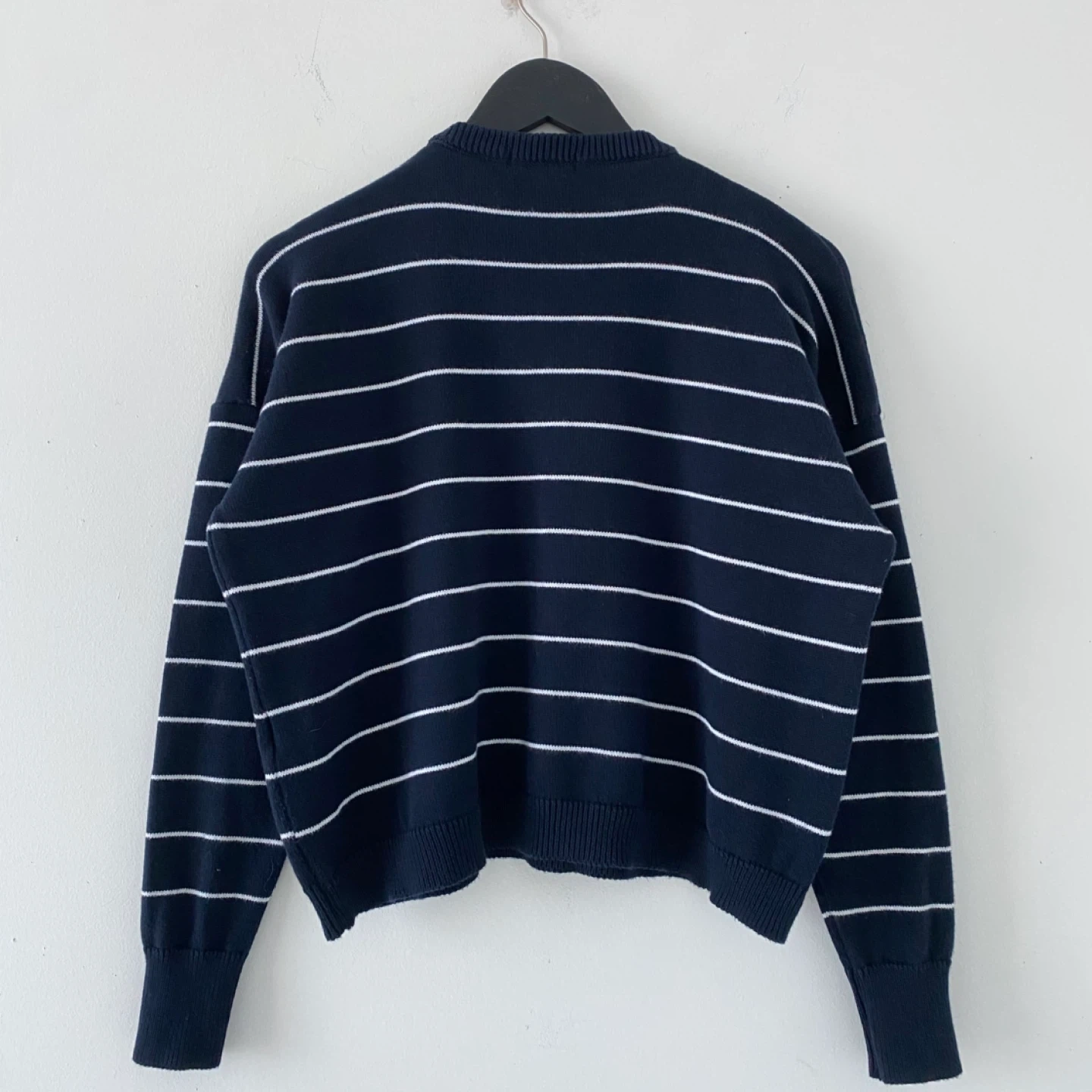 Brandy Melville classic crewneck sweater with dropped shoulders. Made of lightweight 100% cotton in navy and white stripes. It's very soft! Can be worn many seasons. There's some general wear but there's no staining or damage. It's clean and in great gently used condition.
