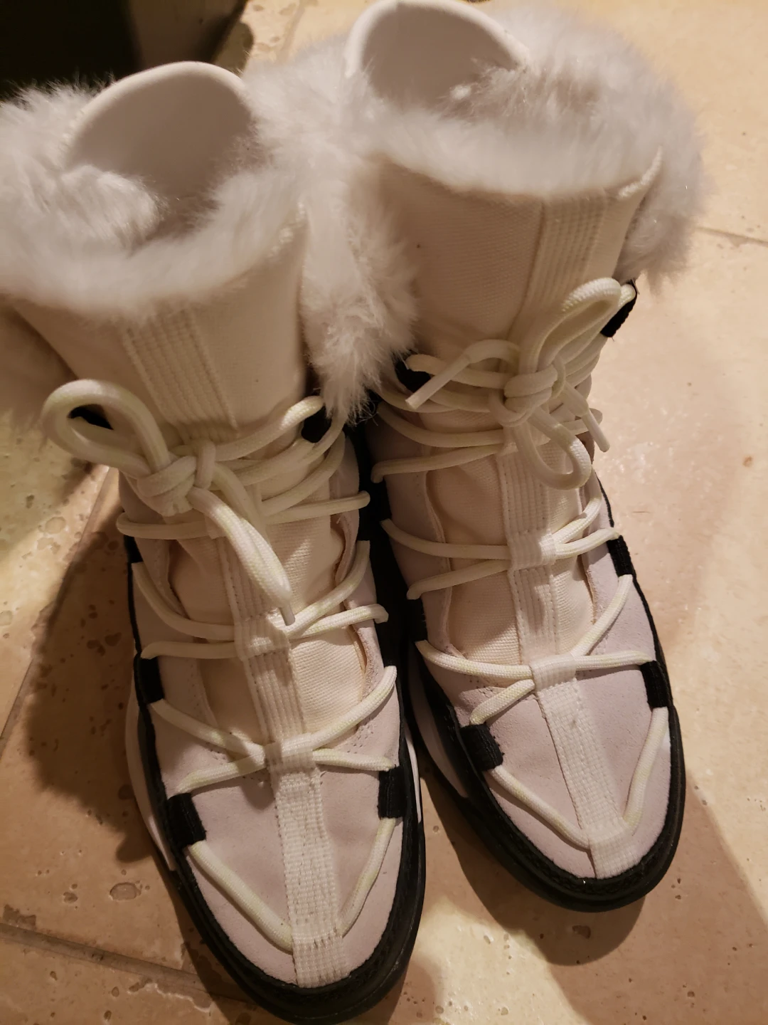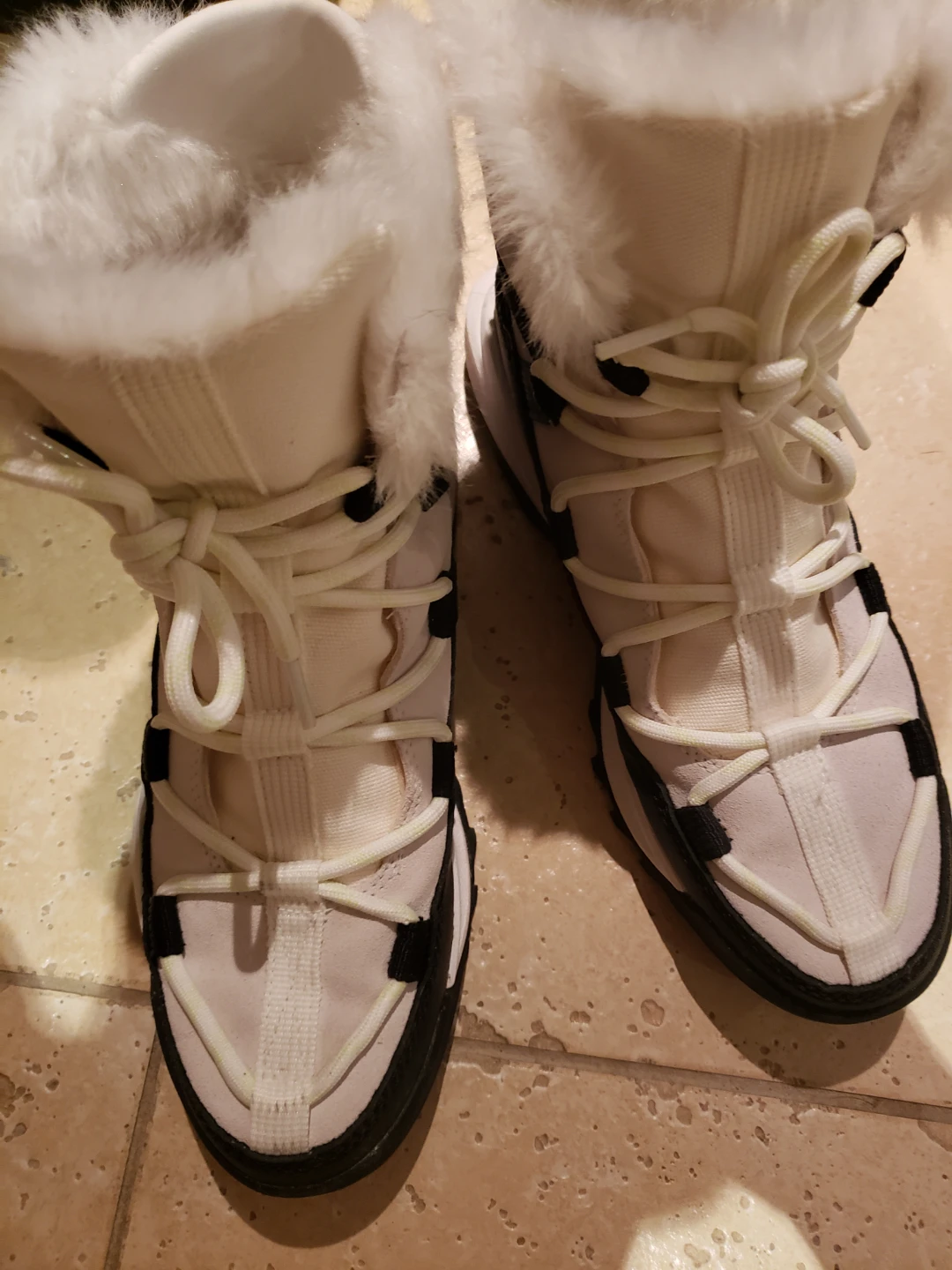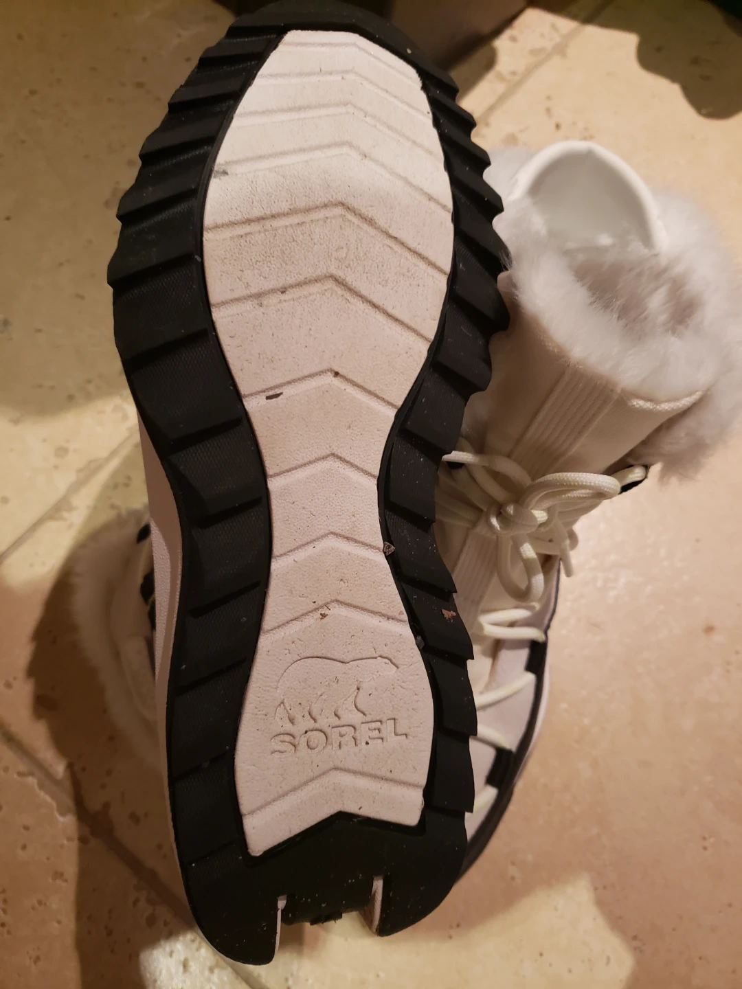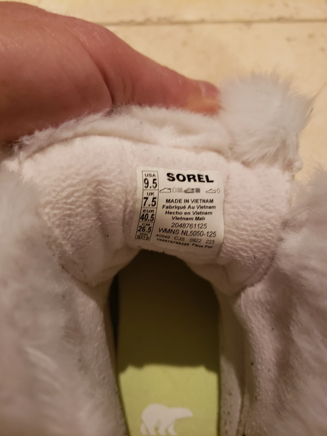 Selling a pair of Sorel Explorer II Joan Next Lite boots in size 9.5. These stylish boots are white with black accents and feature a cozy faux fur trim. They are in great condition and ready for the winter season!