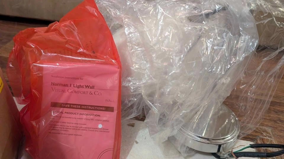 Brand new (still in box) VISUAL COMFORT ONE LIGHT WALL SCONCE - WHITE-SILVER. Market Price = 160 CAD + Taxes ( picture attached). Asking price= 40 only. Smoke Free Pet Free House. A refined touch on an industrial design, these metal pendants feature a dome shade accented with a Bronze or Chrome arms. Led bulbs not included. Great for gifting or home use. Let me know if you're interested!
