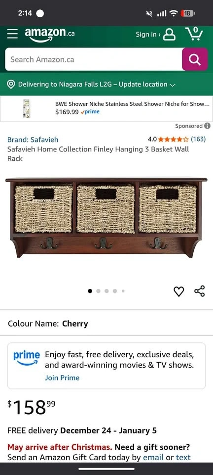 Brand new in box Safavieh Finley 3-Basket Hanging Wall Rack in cherry finish. Amazon price is $169 CAD + tax, asking only $85 CAD.