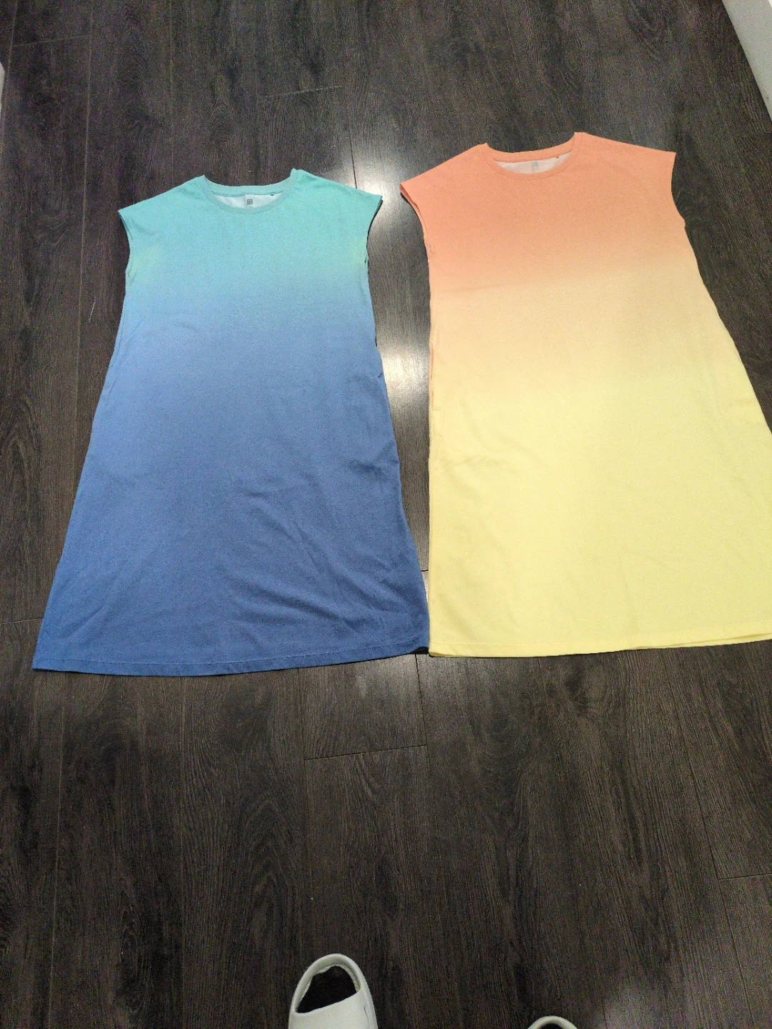 Selling two cute Uniqlo kids dresses in size 11-12! One is a lovely blue-green ombre, and the other is a sunny yellow-orange ombre. Great for summer!
