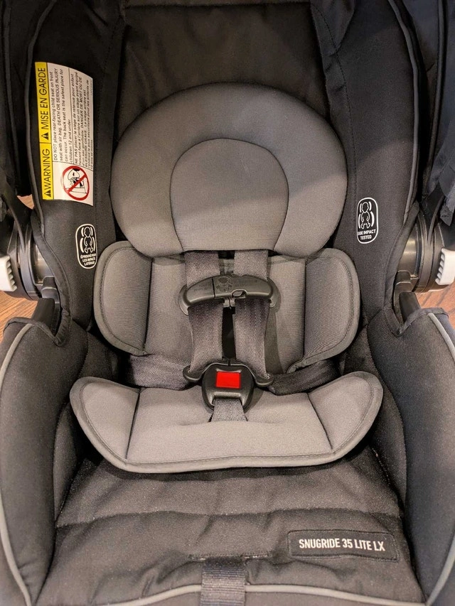 I'm selling a barely used Graco Snugride 35 Lite LX infant car seat, designed for infants and offering lightweight portability and easy installation. This car seat provides a secure and comfortable environment for your little one, ensuring safety and peace of mind during travel. Key features include: * Lightweight design for easy carrying * Secure attachment to Graco Click Connect strollers * Adjustable harness for a snug fit * Infant head and body support