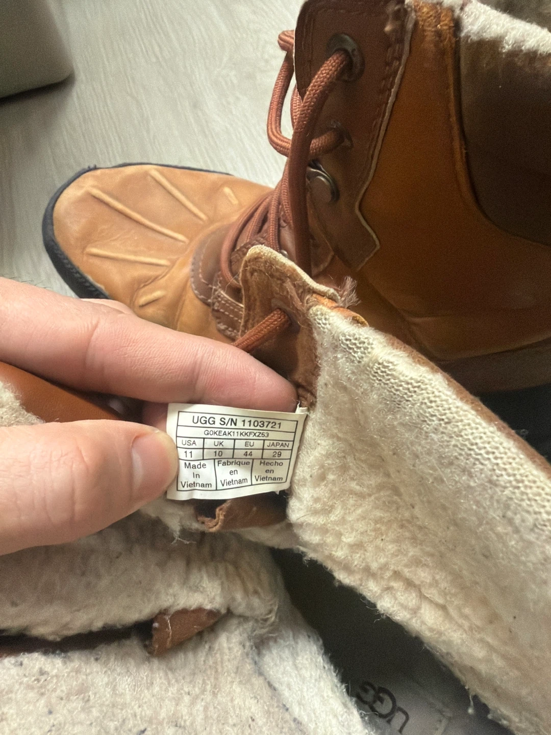 Selling a pair of UGG boots in great condition. They're a men's size 11 and made of brown leather. Perfect for the colder weather!