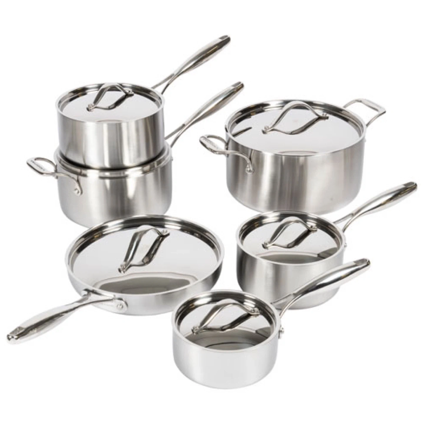 Selling a Lagostina cookware set! This set includes various pots, pans, and lids, all made of durable stainless steel. Perfect for any home chef looking to upgrade their kitchen cookware