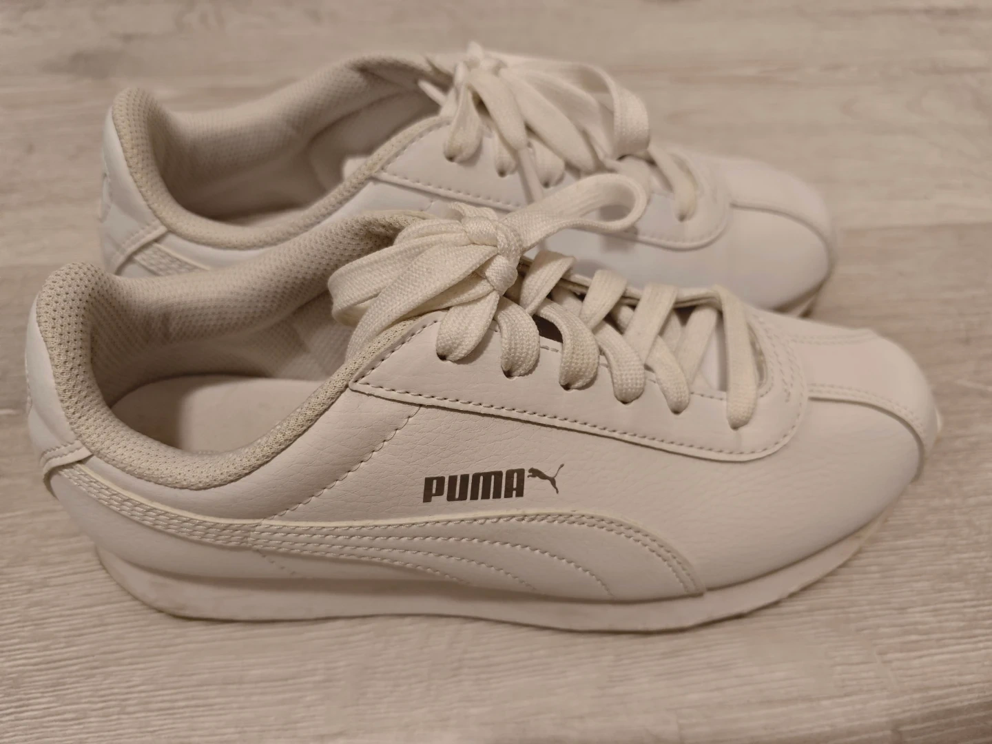 Selling a pair of Puma sneakers in white. Worn once. They are in great condition and ready for a new owner. The size is 5.5 CDN.