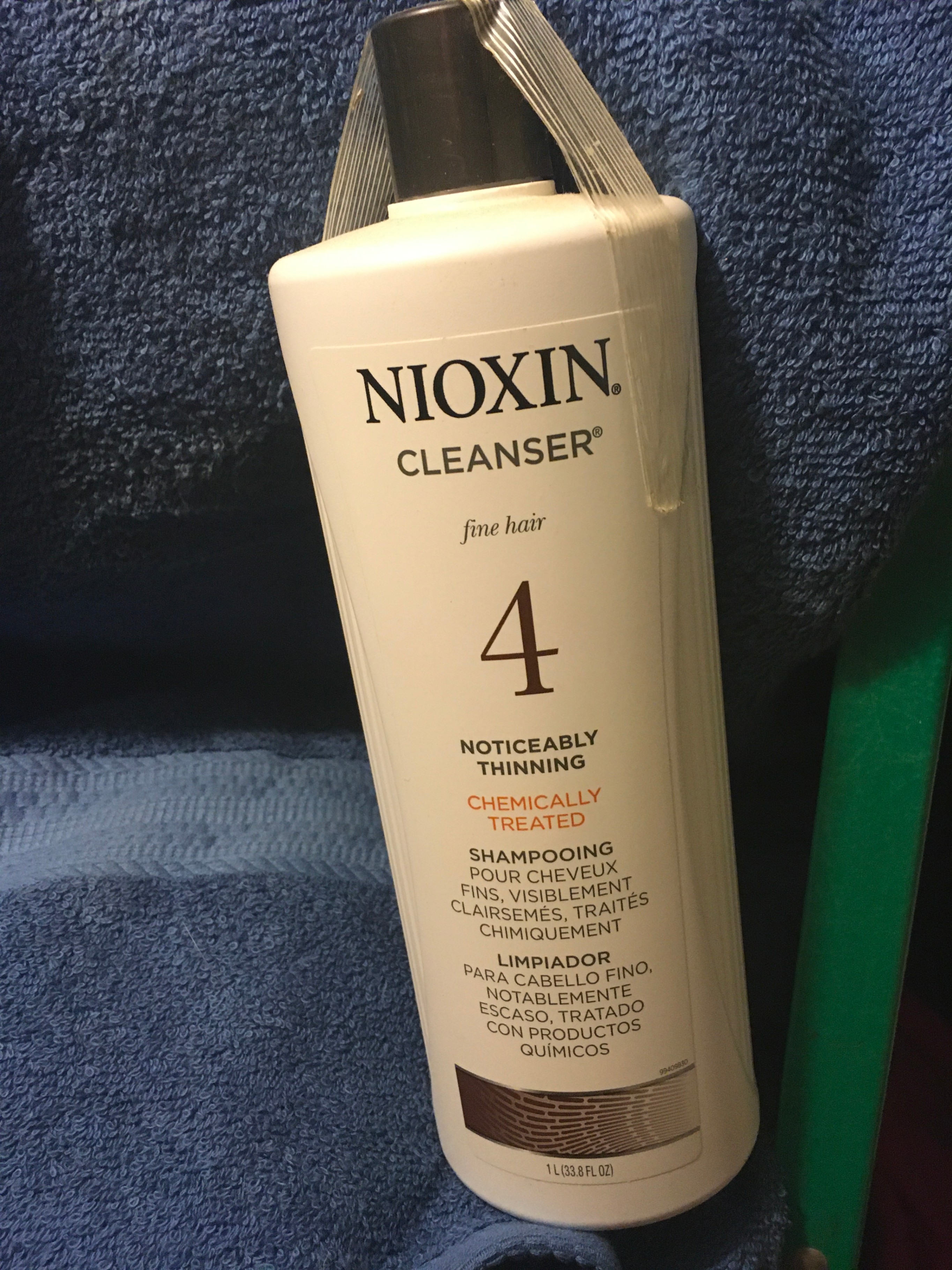 Selling a bottle of Nioxin Cleanser for fine hair that is chemically treated. This is a shampoo that helps with noticeably thinning hair. The bottle contains 1 L (33.8 FL OZ).