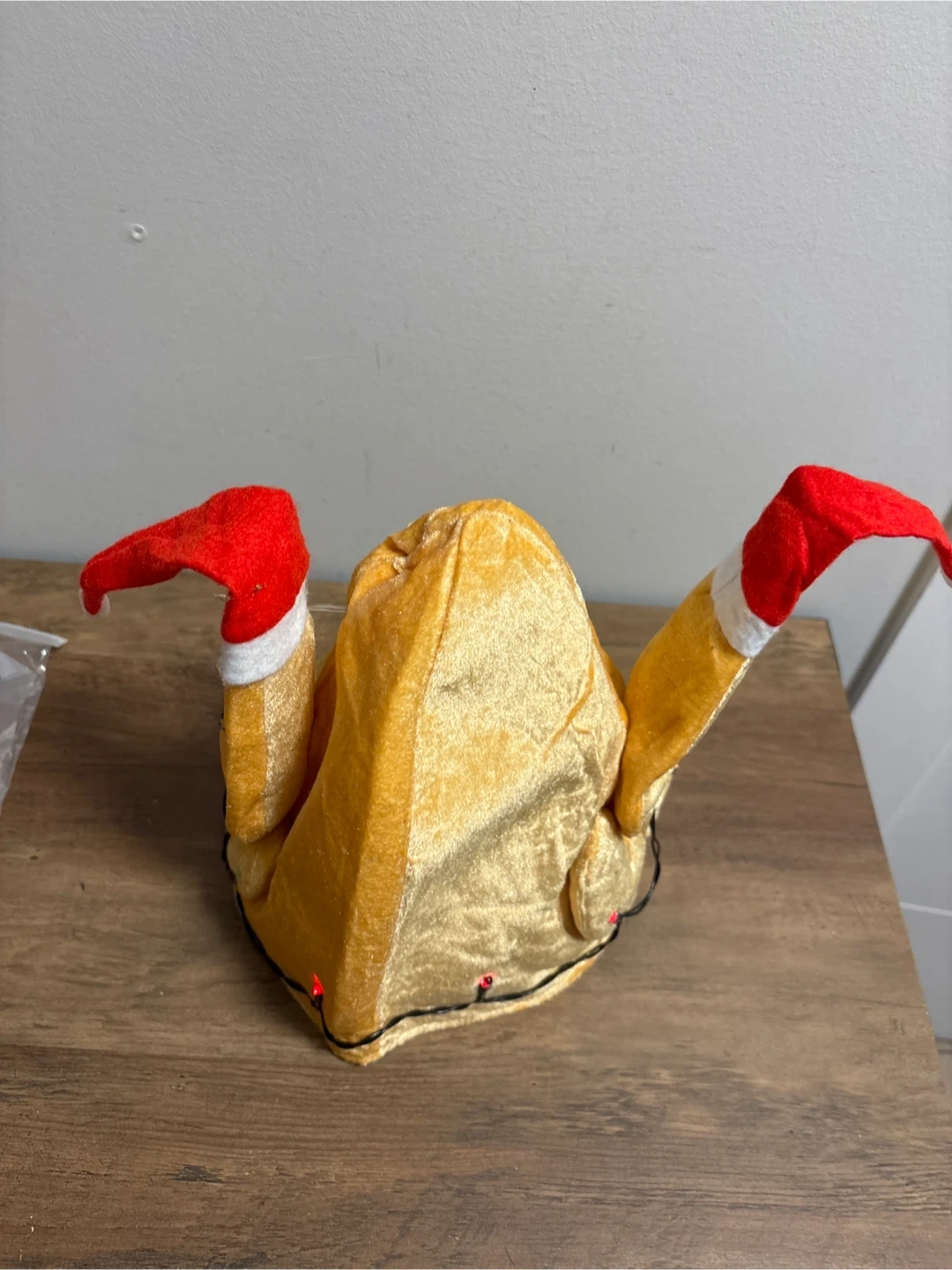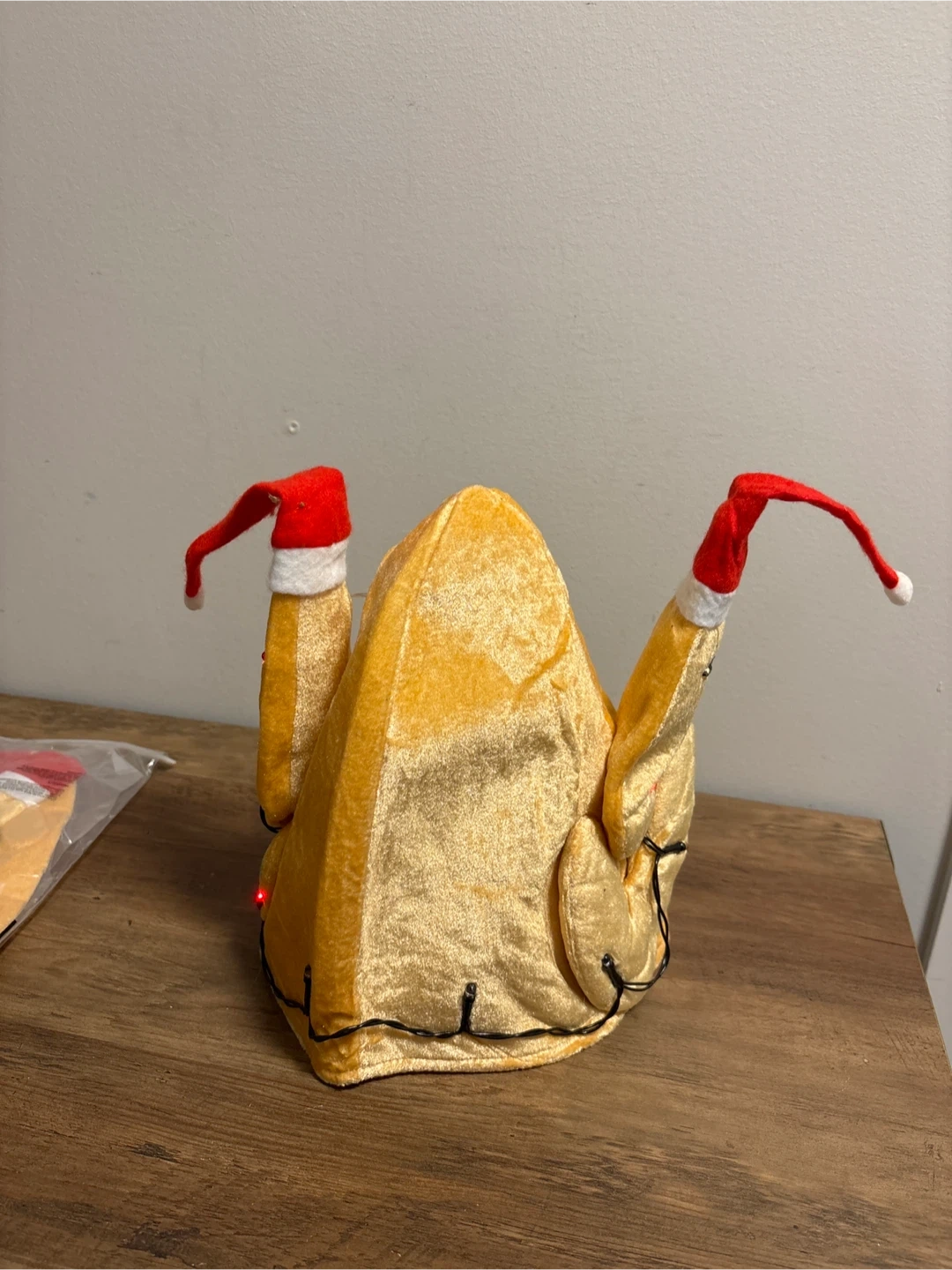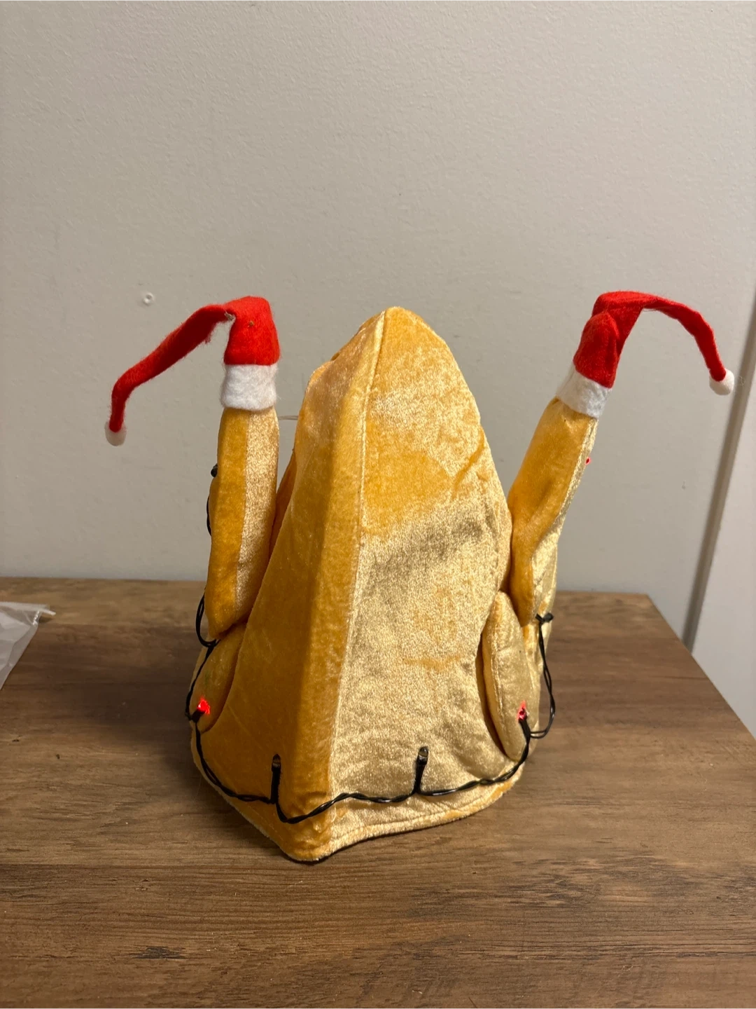 This Buluomu turkey hat is brand new and still in its original packaging! Perfect for some festive fun, it's a golden colour with red and white accents. Get ready to gobble 'til you wobble!