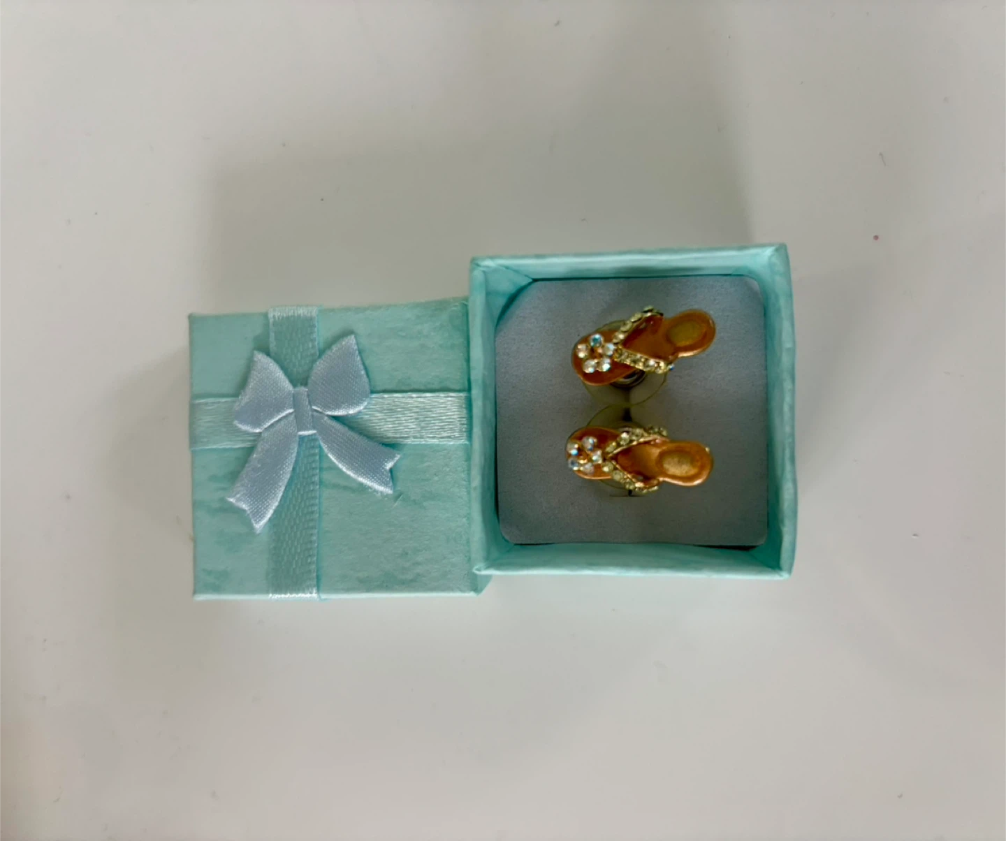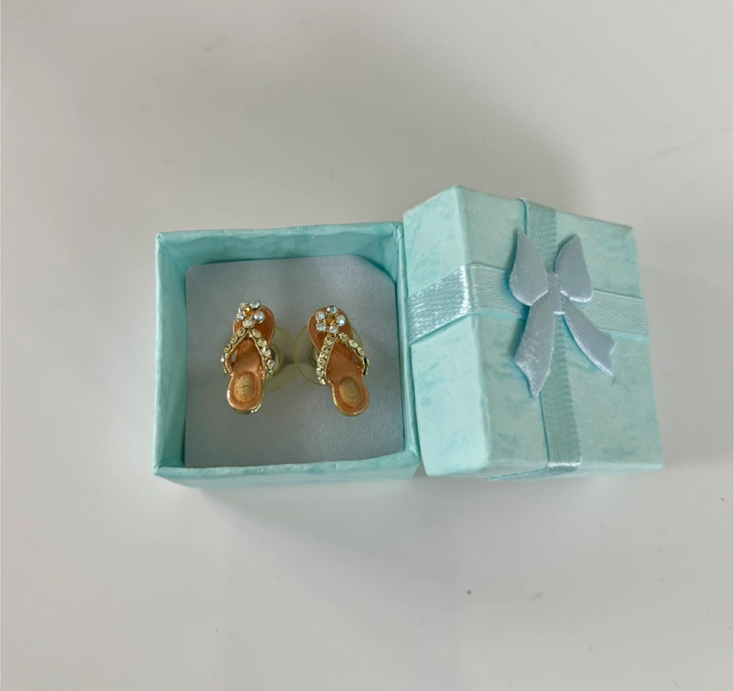 These are a cute pair of flip flop earrings! They have little rhinestones on the straps and come in a little box.