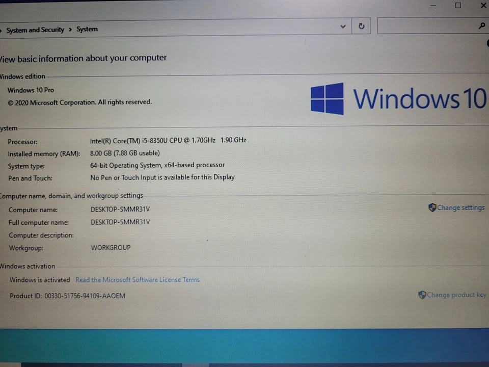 CPU Intel Core i5 (8th Gen) @8350M / 2.6 GHz