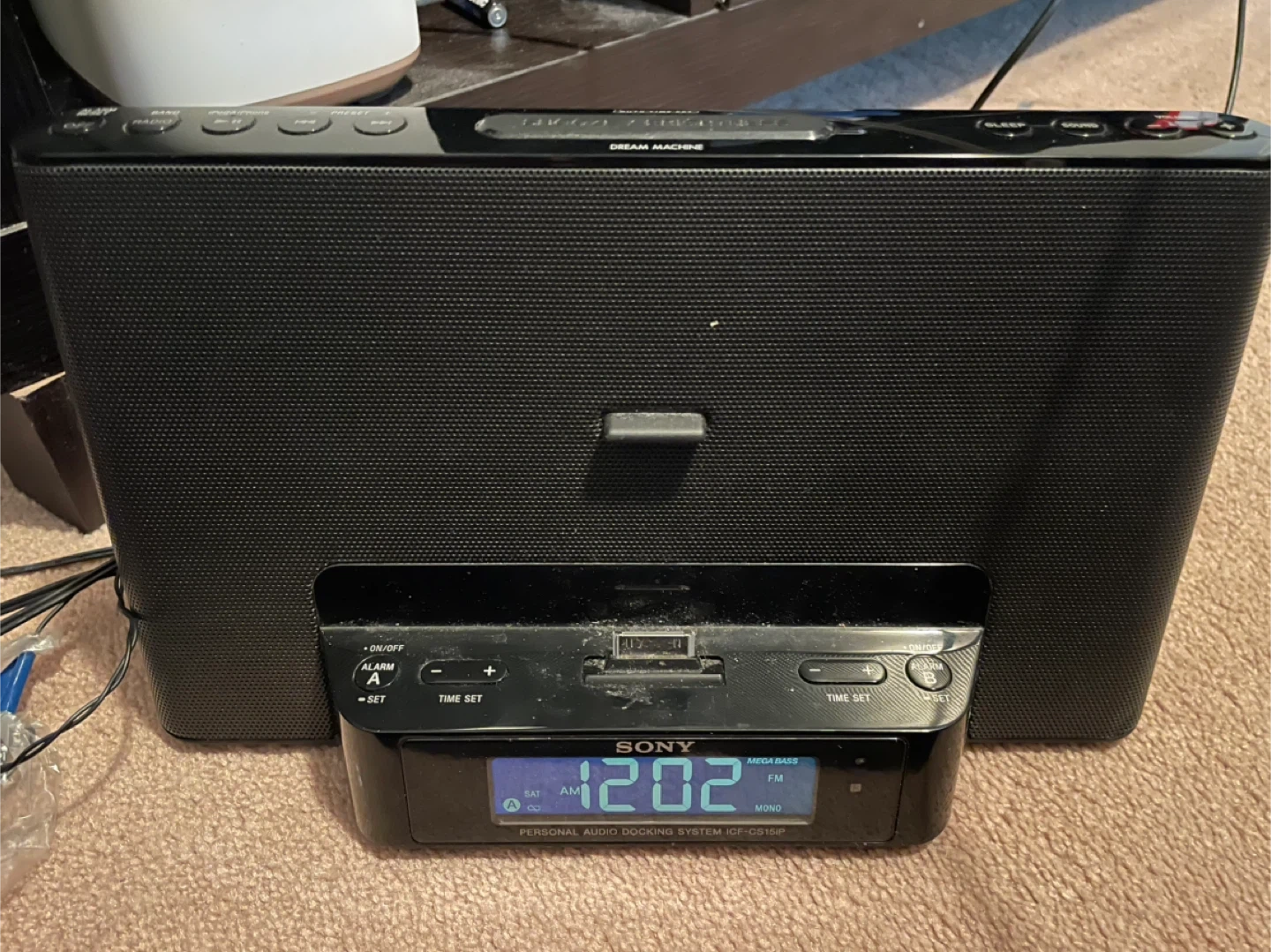 Selling a Sony Dream Machine personal audio docking system, model ICF-CS15iP. It's in good condition and ready to use as a clock radio and iPod/iPhone dock. Perfect for your bedside table!