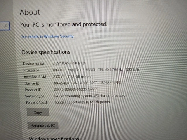 Intel Core i5 8350U / 1.9 GHz RAM: 8 GB Hard: NO Hard ($40 extra 256 GB with Windows 10 pro (SSD) Display 13.3'' FHD 1920 x 1080 Touch Screen No Charger Charger adapter ($40 extra for charger) HDMI