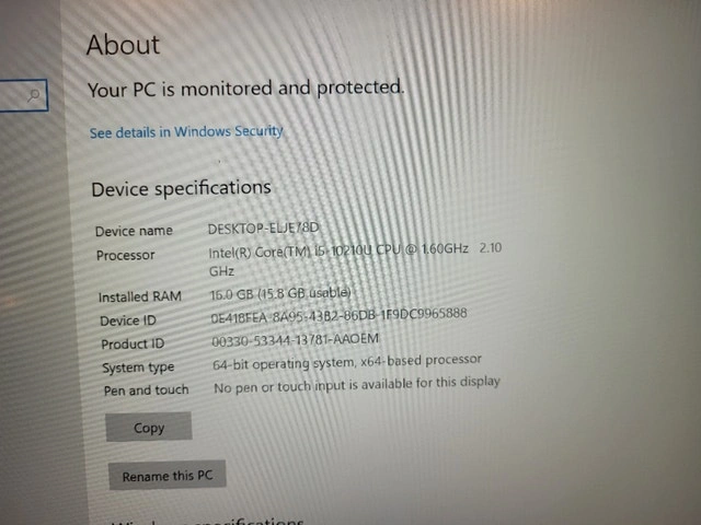 Price is Firm. Used Lenovo E14 in great condition 9 out of 10 CPU Intel Core i5 (10th Gen) @10210U / 2.10 GHz NO Ram ( $40 extra for 16 GB ) NO Hard ( $30 extra for 256 SSD with Windows 10 Pro) NO Adapter ( $30 extra for Original Charger) Display (1920 x 1080) Full HD 14.1'' HDMI port