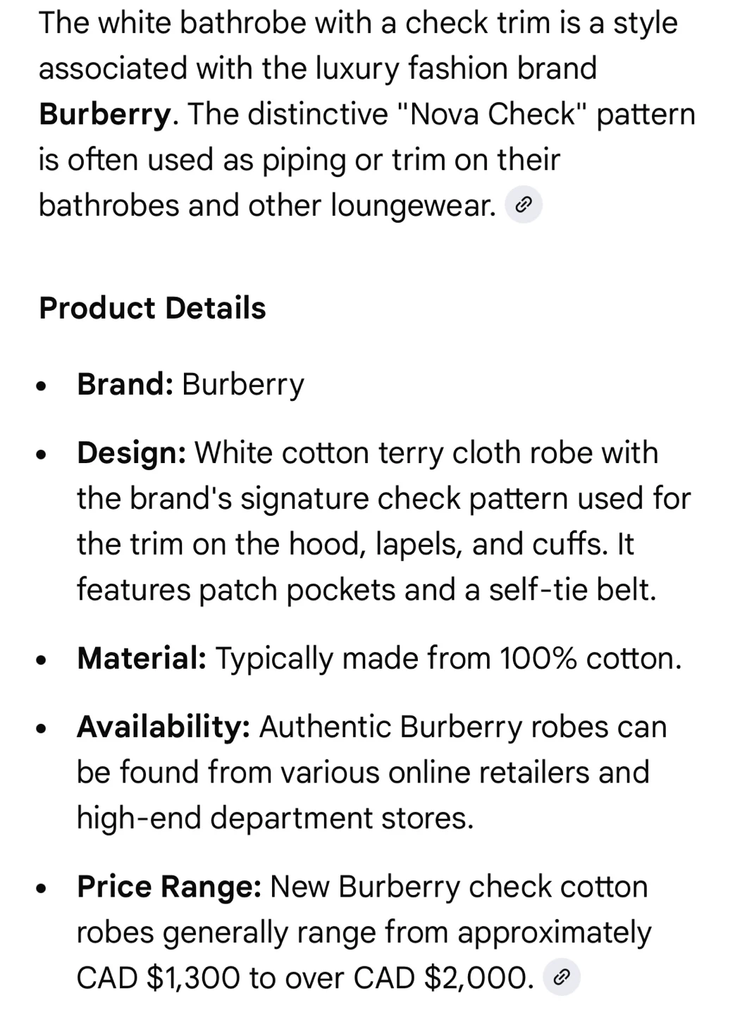 Authentic Burberry London White Bath Robe - Size M