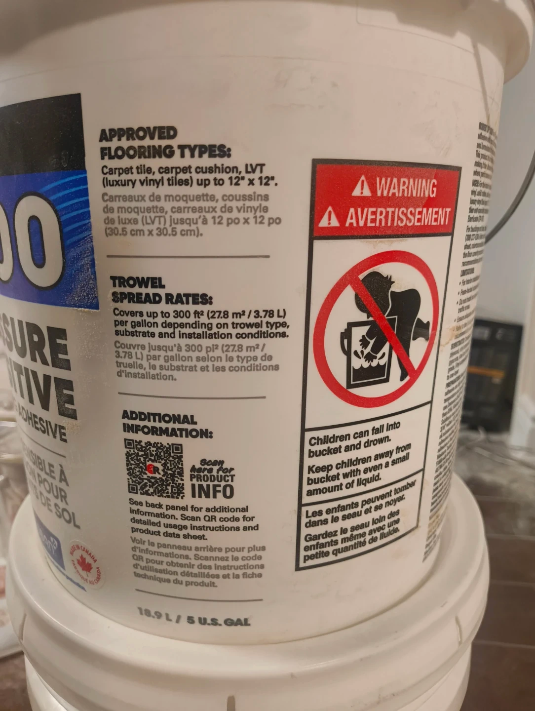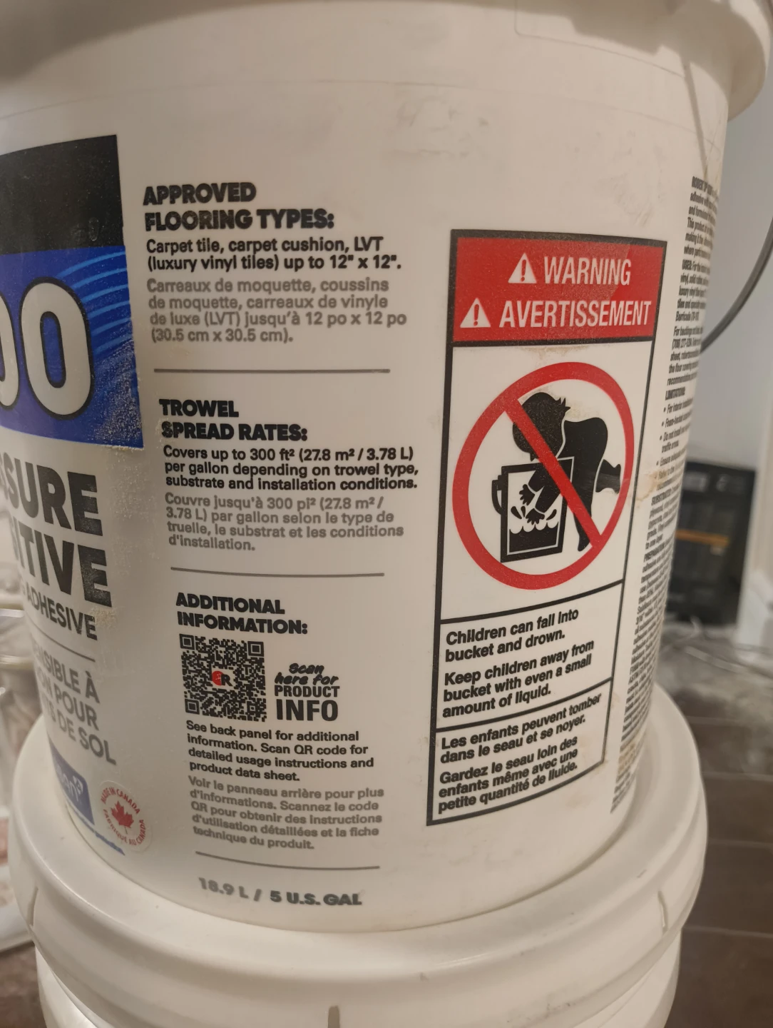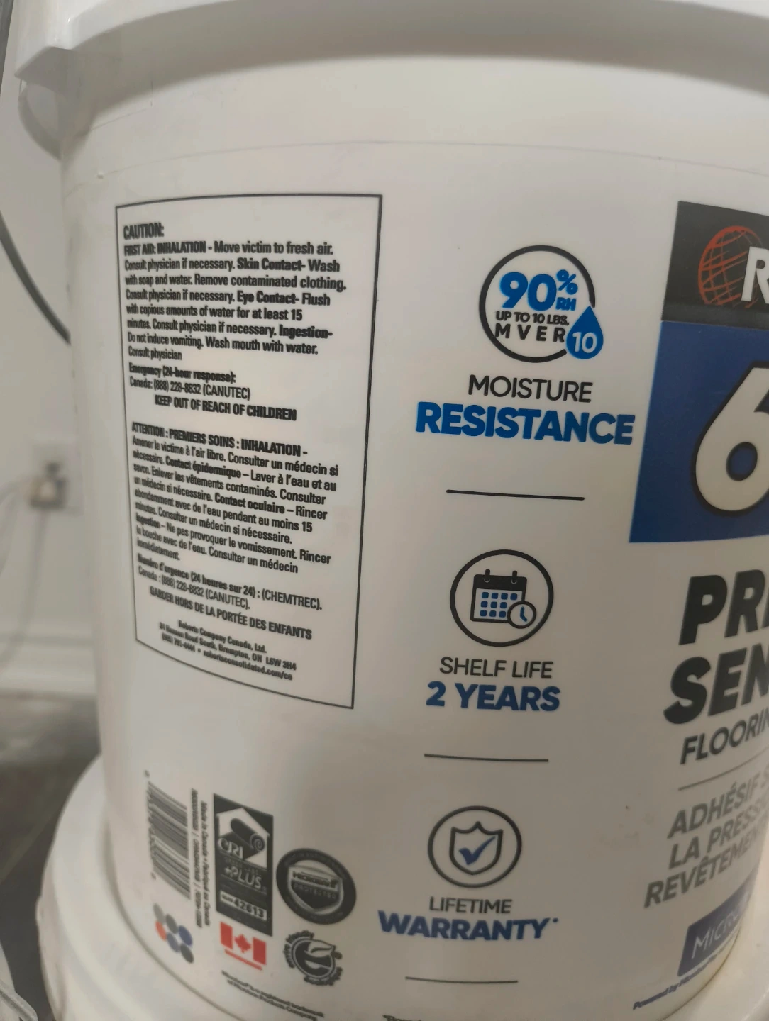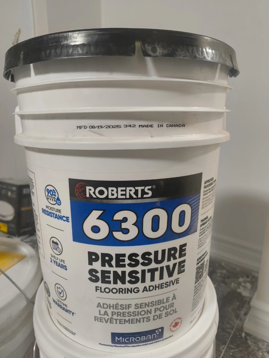 Selling a 3.78L bucket of Roberts 6300 Pressure Sensitive Flooring Adhesive.