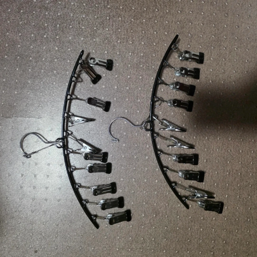 Each hanger has multiple clips with rubber ends to hold socks, pants, or 10 small clothing items.