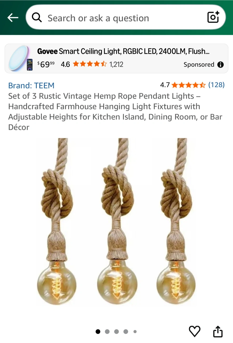New in box! Set of 3 Rustic Vintage Hemp 36” Rope Pendant Lights