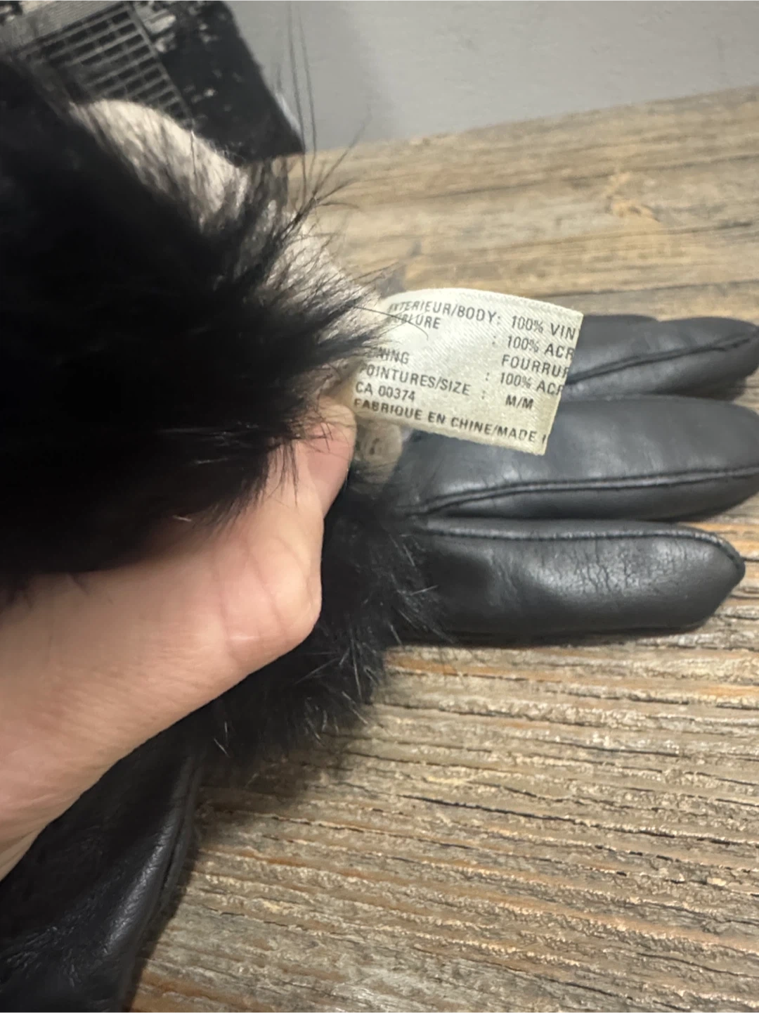 Leather & fur gloves - size med