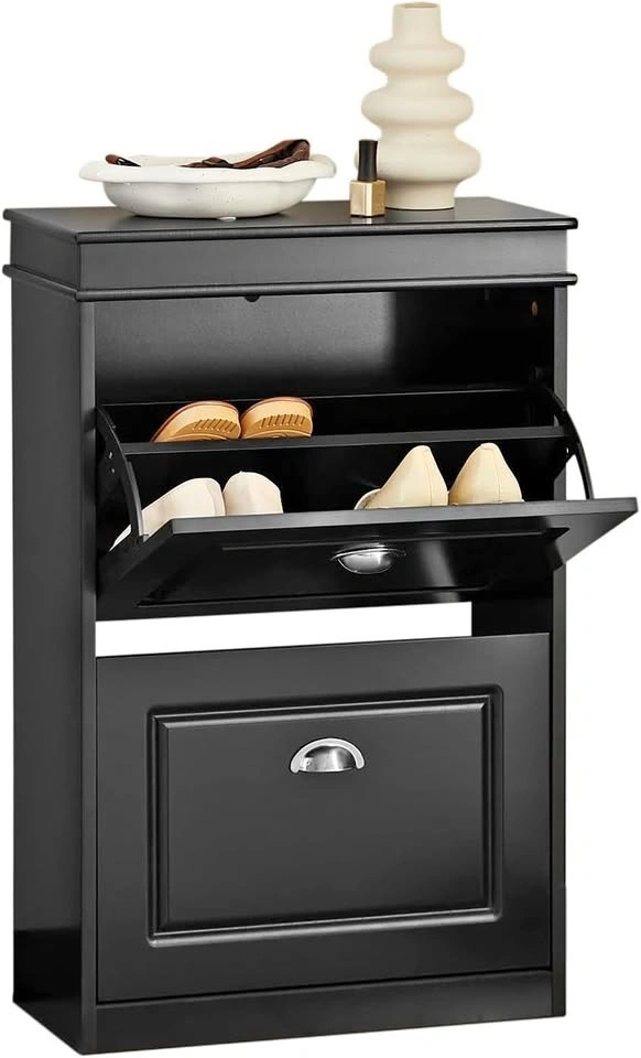 SoBuy Black Slim Shoe Cabinet with Flip-Drawers – FSR78-SCH