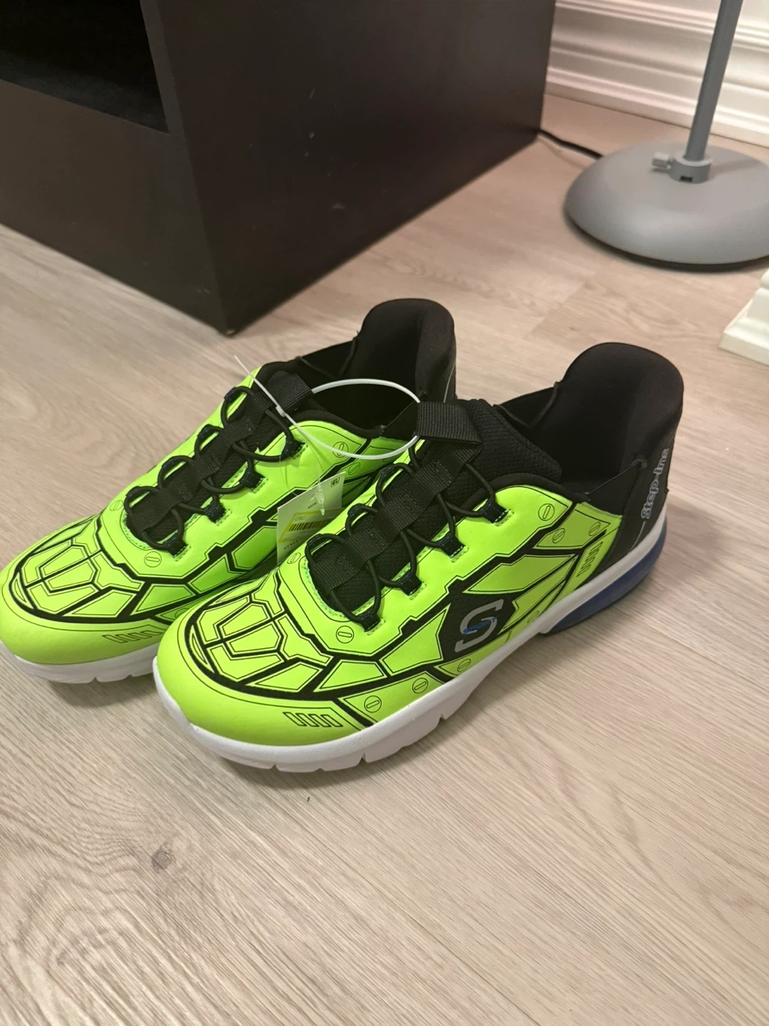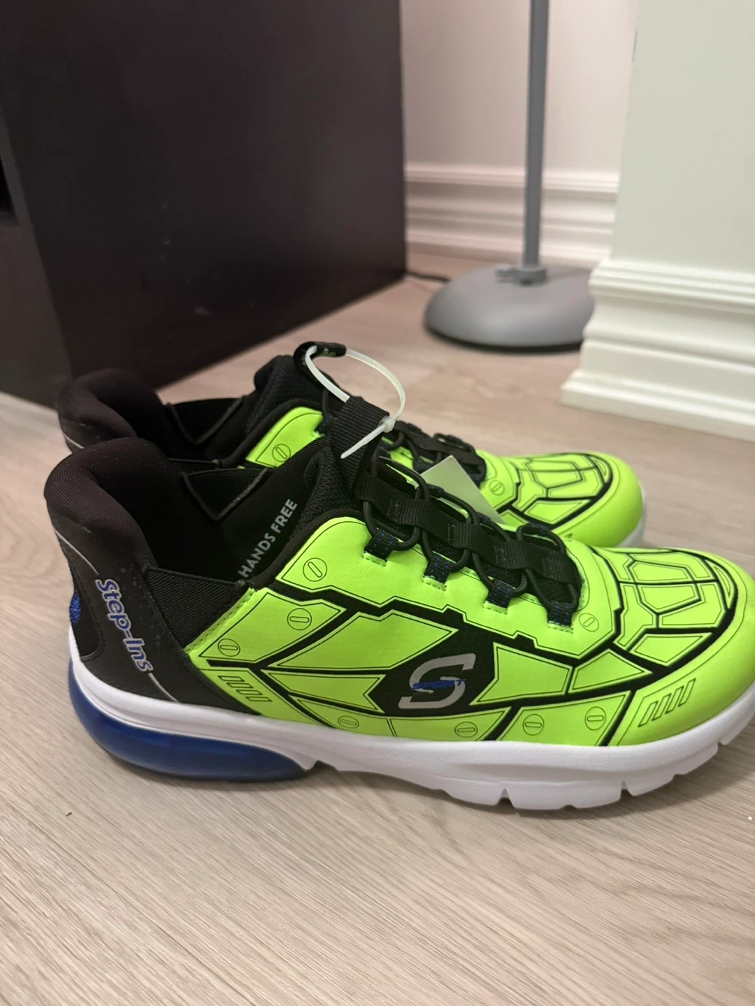 These are a fantastic pair of Skechers S-Sport by Skechers Step-Ins sneakers, perfect for active boys! Their vibrant color and hands-free design make them both stylish and incredibly practical.