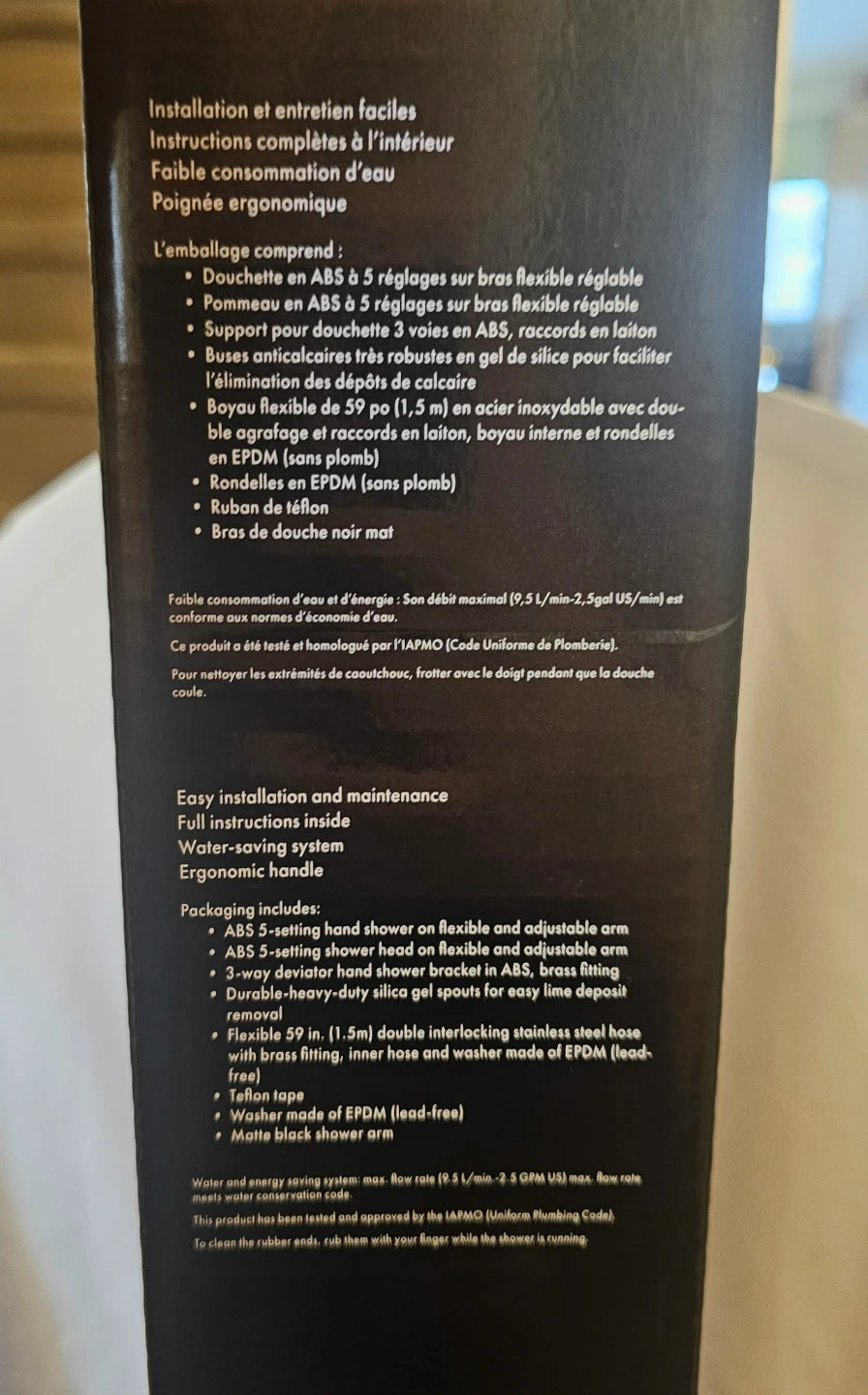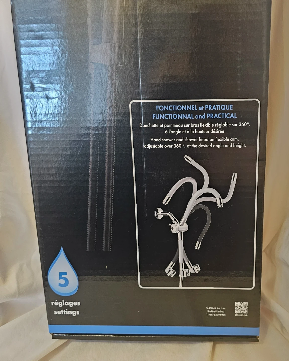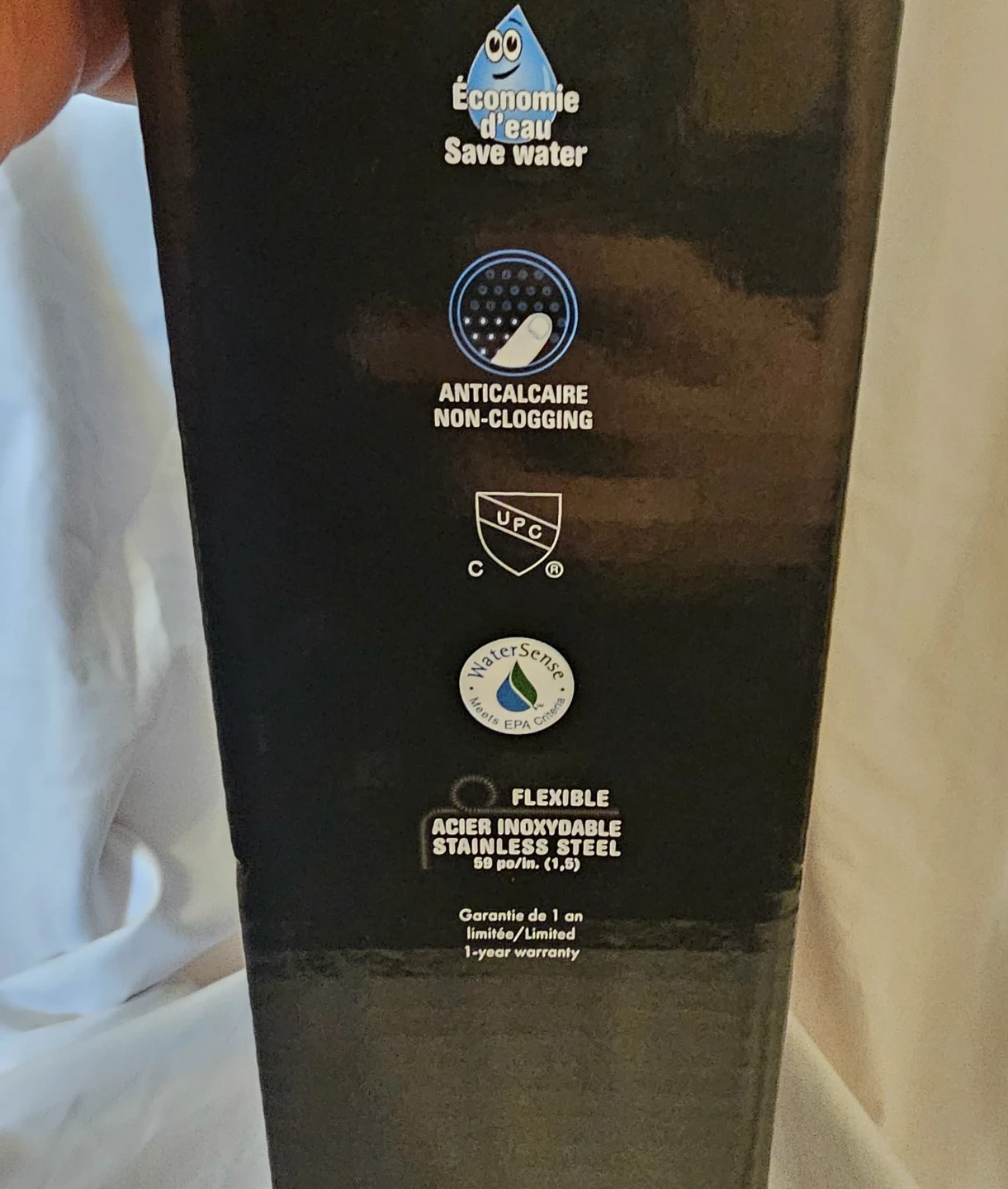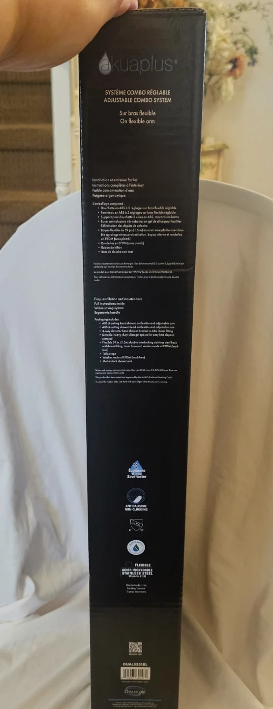 This Black Akuaplus Adjustable Combo System Shower Head is Brand New and never used. Sealed in Box.