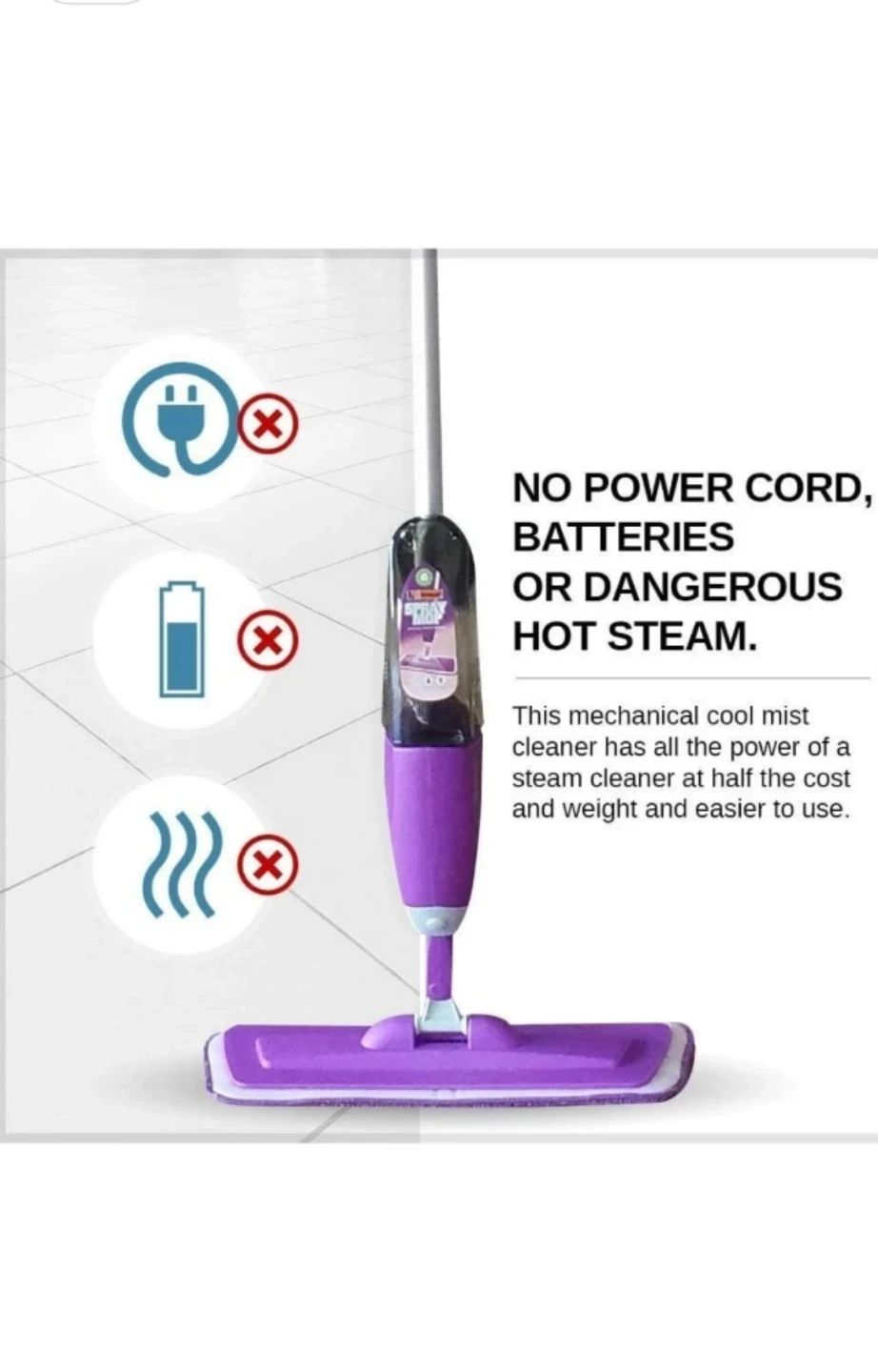 It's a mechanical cool mist cleaner, so no need for power cords, batteries, or dangerous hot steam.