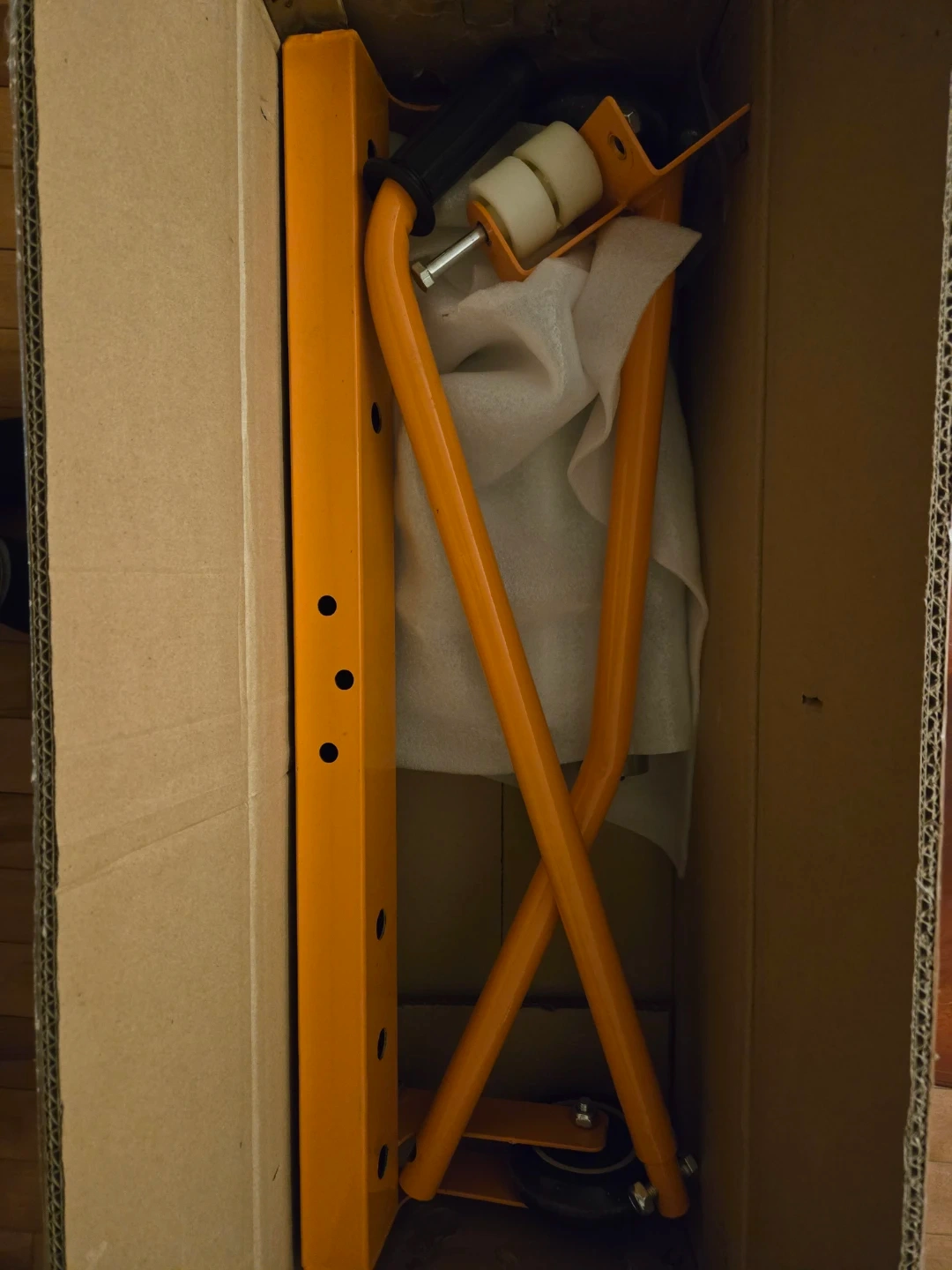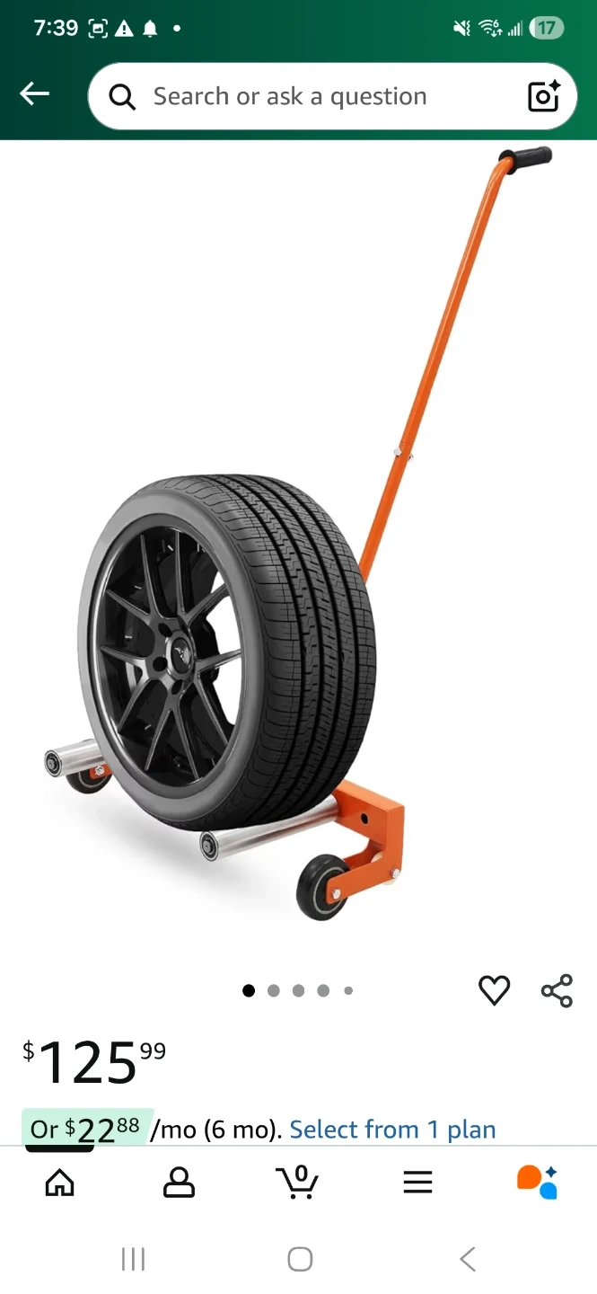 Selling an orange big truck tire dolly! It's in great condition, like new (open box). Never used, needs to be assembled. Perfect for moving tires around your garage or shop with ease and wheel alignment on lugs.