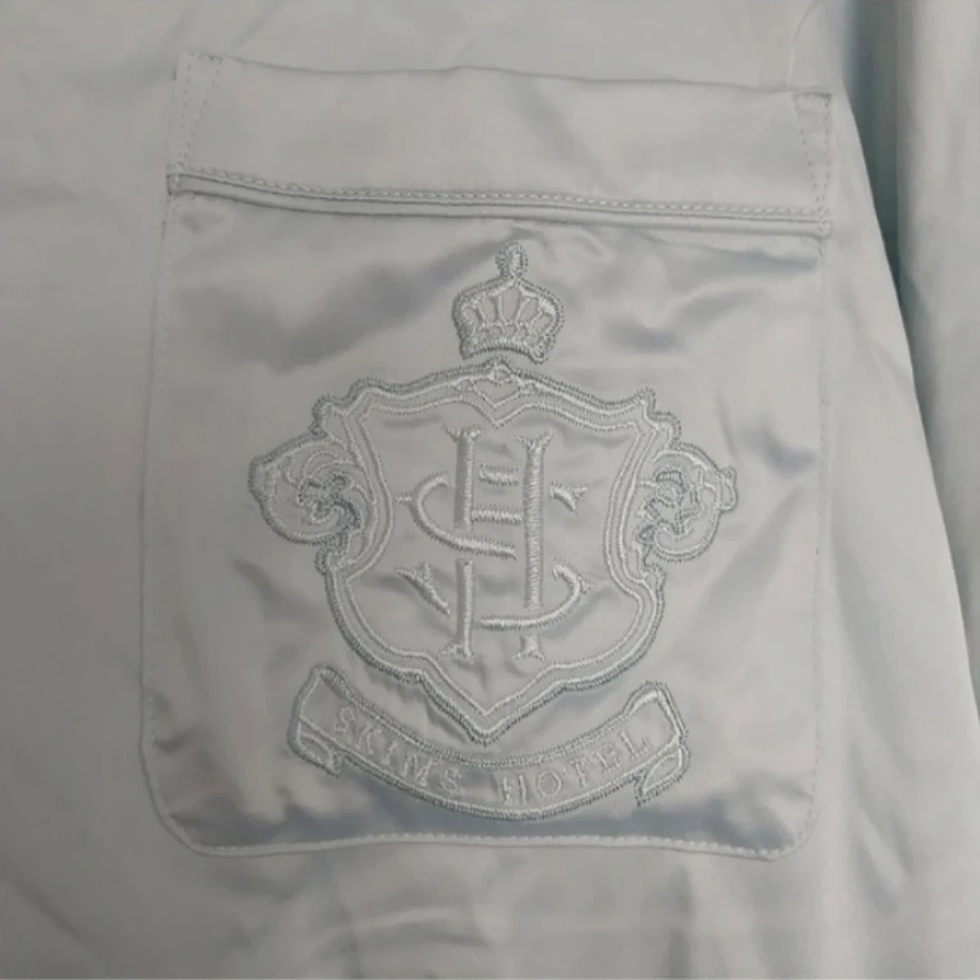 Get your best rest in this sophisticated-chic sleep top. Made with our luxe, silky fabric, this top features a button-up long sleeve with tonal SKIMS embroidery at the chest pocket. Fits true to size.