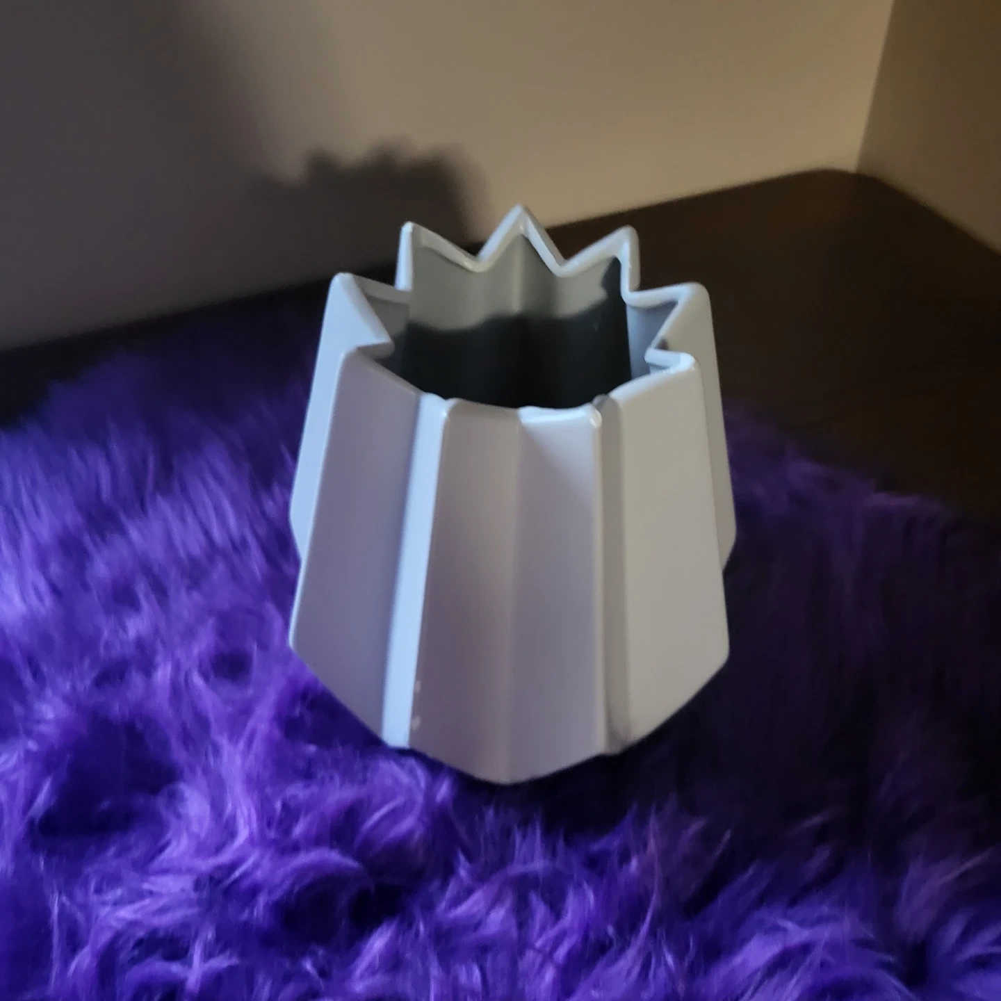 Here's a cute white geometric planter, perfect for adding a modern touch to your space! It's in great condition and ready to house your favourite plant