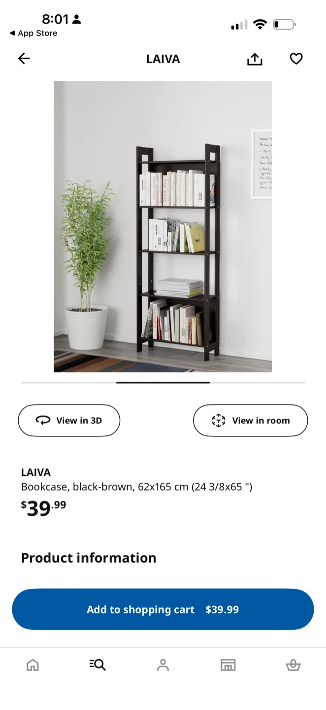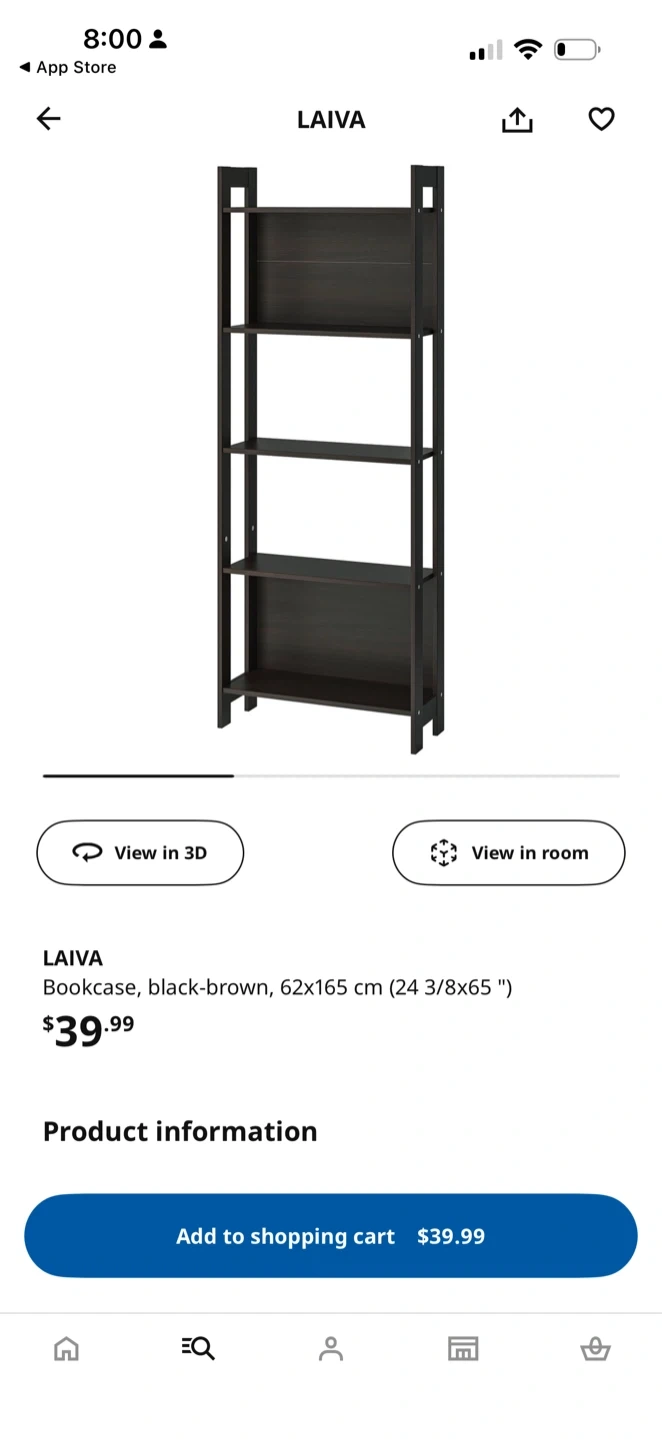 Selling an IKEA LAIVA bookcase in black-brown. It's in great shape and ready for your books or decor! It measures 62x165 cm (24 3/8x65 ")