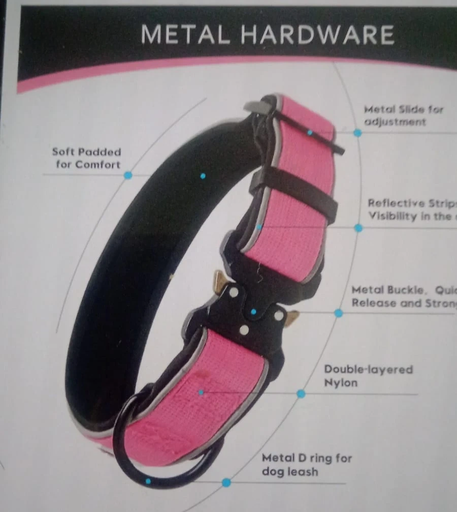 Dog Collar for Small Medium Large Dogs, Reflective, Adjustable Heavy Duty Dog Collar, Soft Neoprene Padded Comfortable for Walking (Pink L)