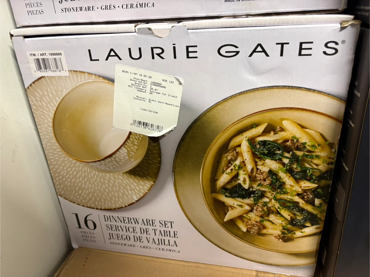 Selling a Laurie Gates 16-piece dinnerware set! The box indicates it's made of stoneware. The box also mentions "Service de Table" and "Juego de Vajilla". According to the label, it was originally bought for $39.97