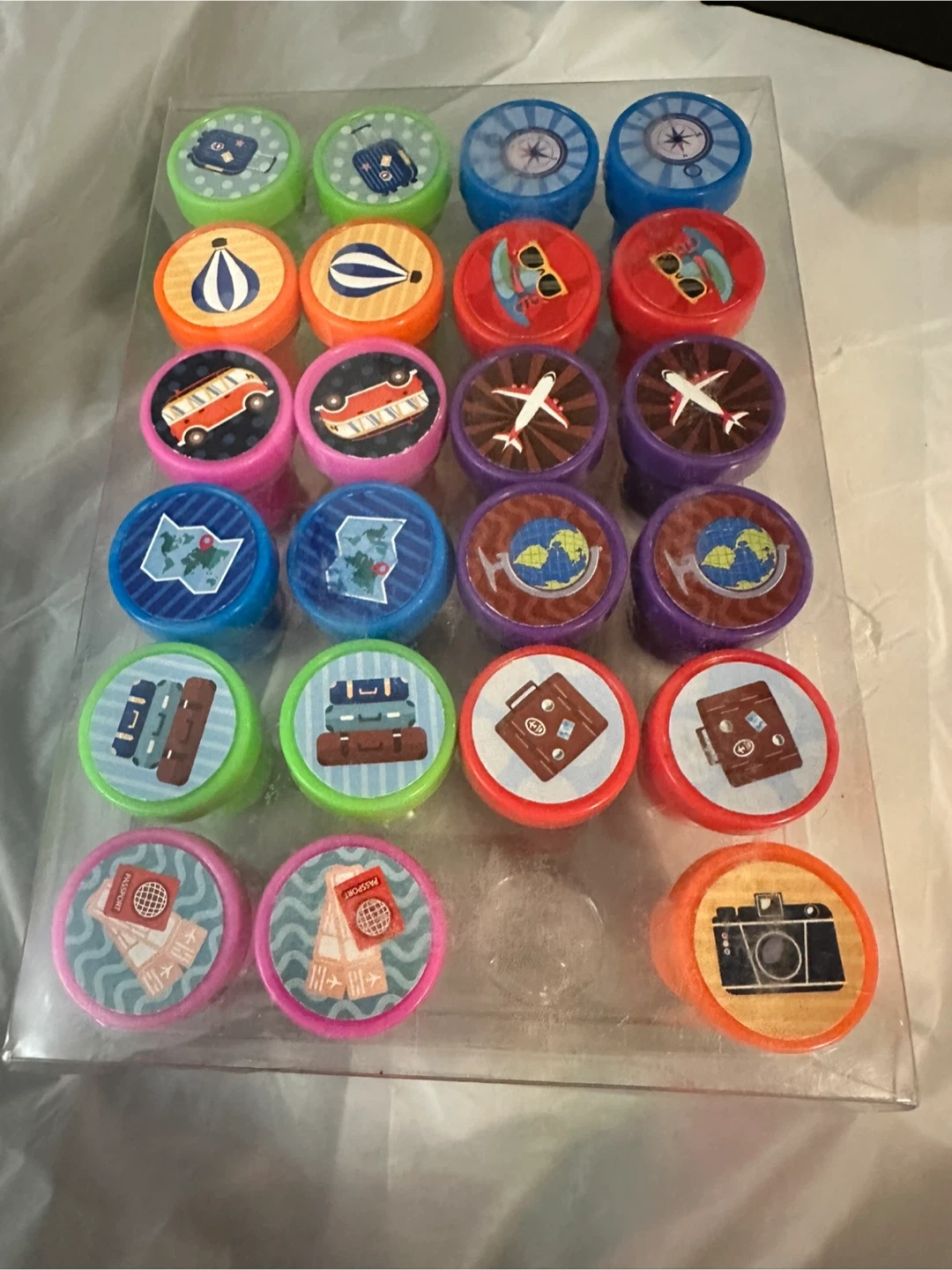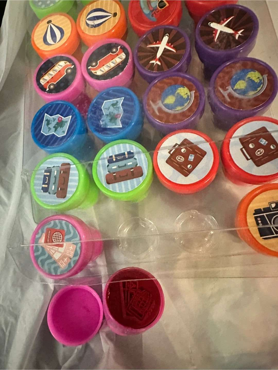 Selling a super cute travel-themed stamp set! They feature various travel icons like suitcases, passports, airplanes, and maps. Perfect for scrapbooking, card making, any creative project or gifts!