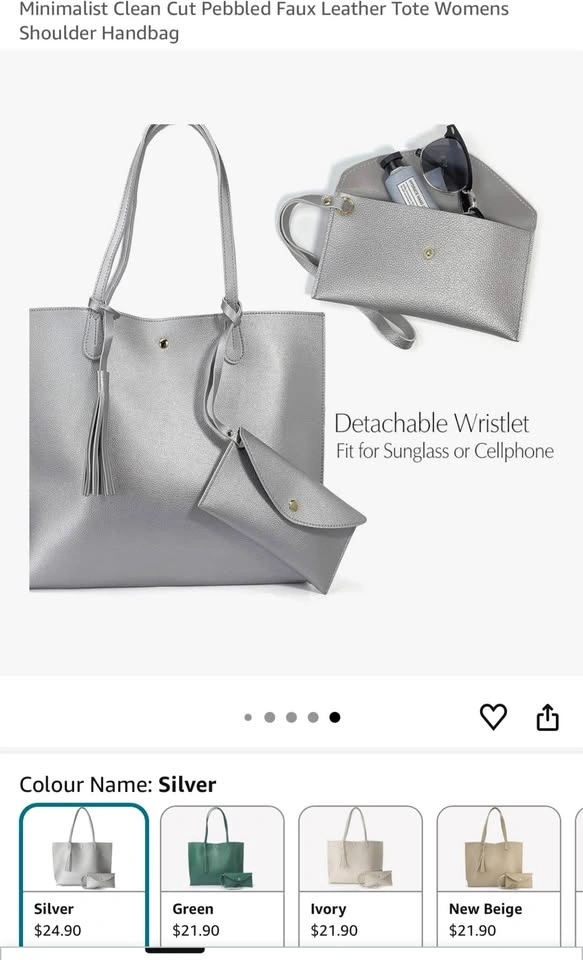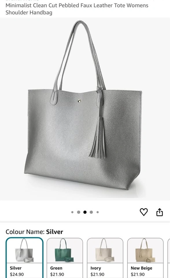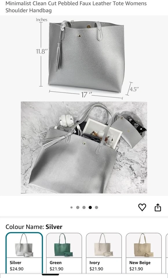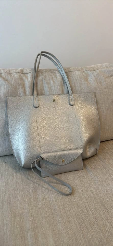 Chic Faux Leather Tote – Silver, Magnetic Closure, 14” Laptop Friendly 👜✨