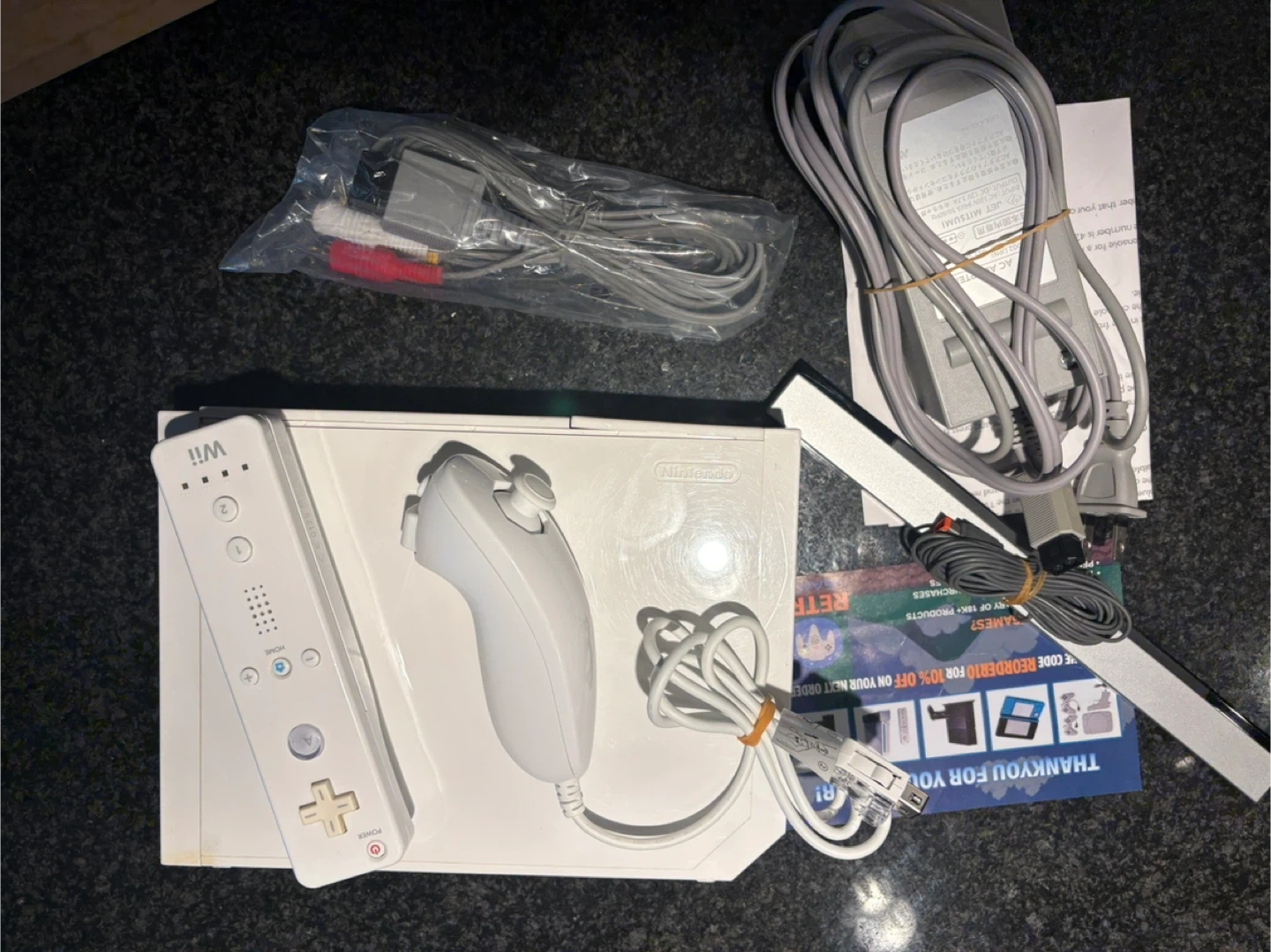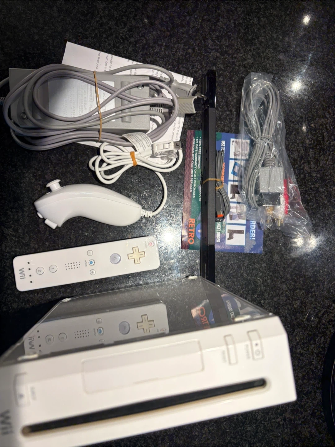 Selling a Nintendo Wii console in great condition! It comes with all the necessary accessories to get you gaming right away. Includes the Wii Remote, Nunchuk controller, sensor bar, and power adapter. Hours of fun for the whole family!