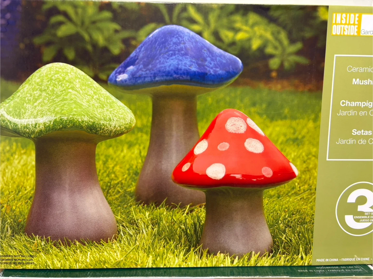Add a whimsical touch to your garden with this set of 3 ceramic mushrooms! They're brand new and ready to brighten up your outdoor space. The box says "Inside Outside Garden", so they're perfect for both indoor and outdoor decor
