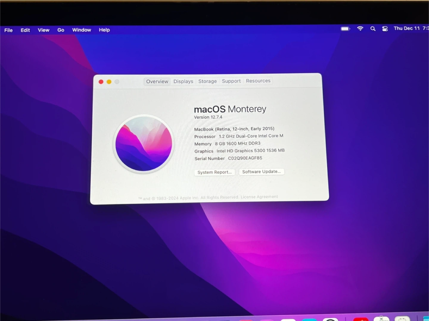 Selling my MacBook (Retina, 12-inch, Early 2015). It's running macOS Monterey Version 12.7.4.