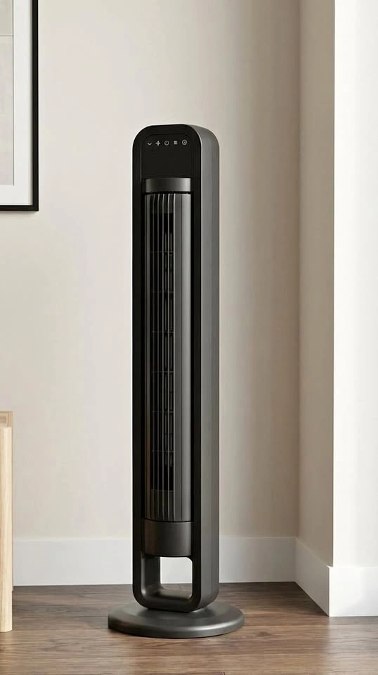 OmniBreeze tower fan in great condition. Four modes, includes small remote attached on the back. Bought last summer at Costco. Low noise — comfortable to use while sleeping. From a smoke-free, pet-free home.