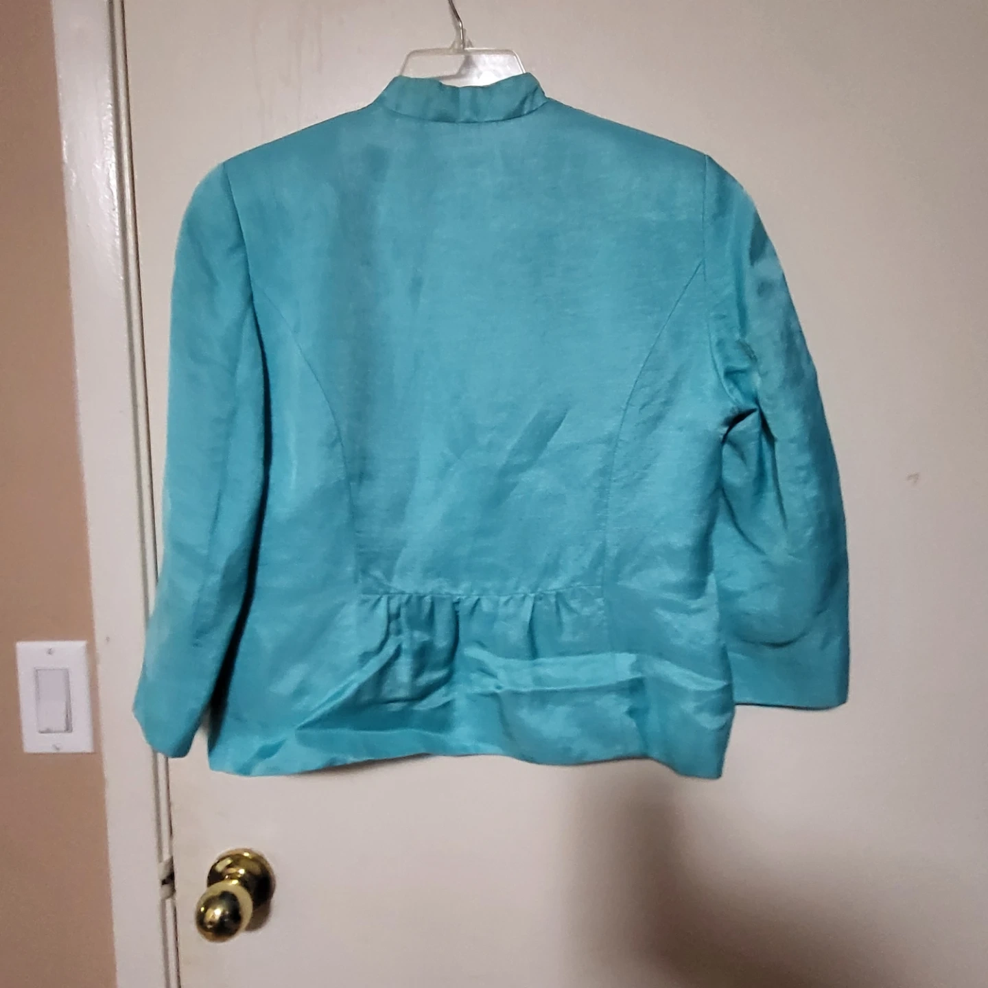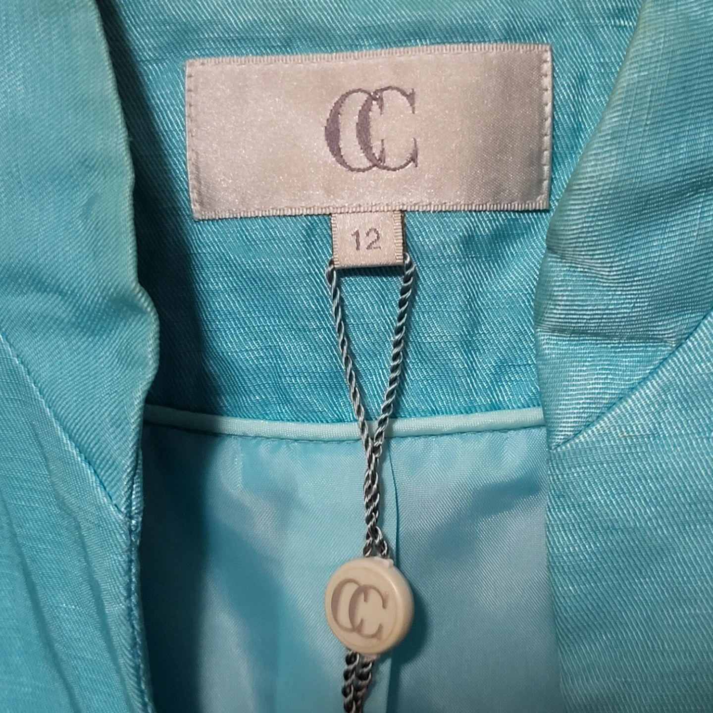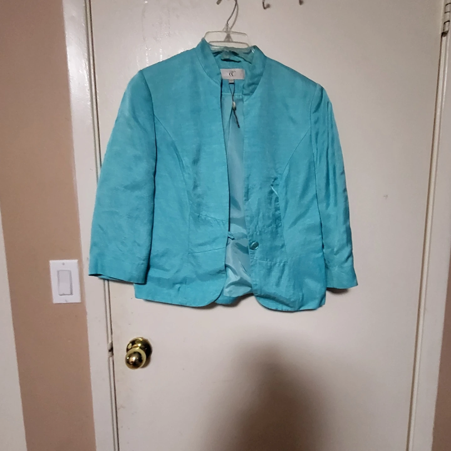 Selling a beautiful turquoise blazer from CC in size 12! It's in great condition and ready for a new wardrobe. The colour is a lovely bright turquoise, perfect for adding a pop of colour to any outfit