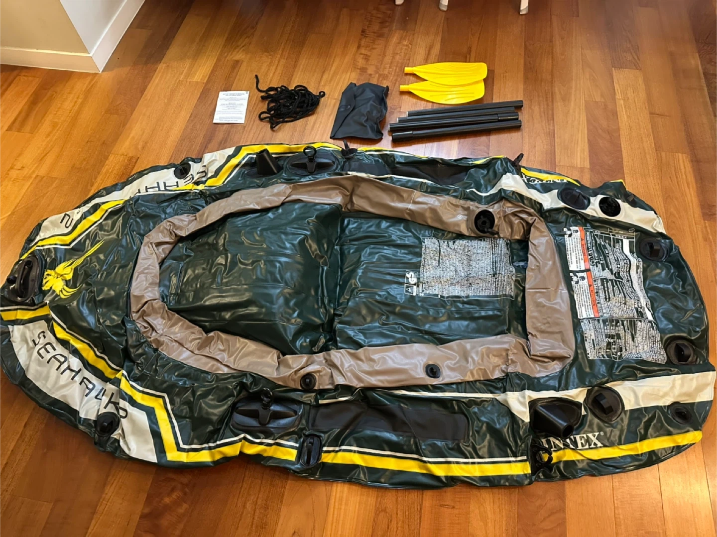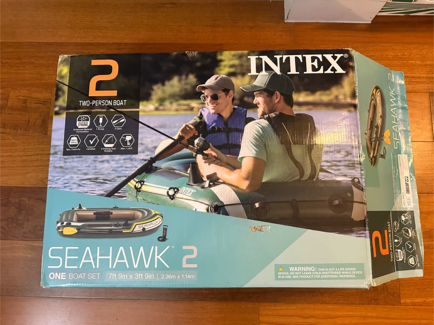 Selling an Intex Seahawk 2 inflatable boat set, perfect for some fun on the water! This two-person boat is 7ft 9in x 3ft 9in x 1ft 4in (2.36m x 1.14m x 41cm). Comes with everything you see in the pictures including oars and pump. The box is included too