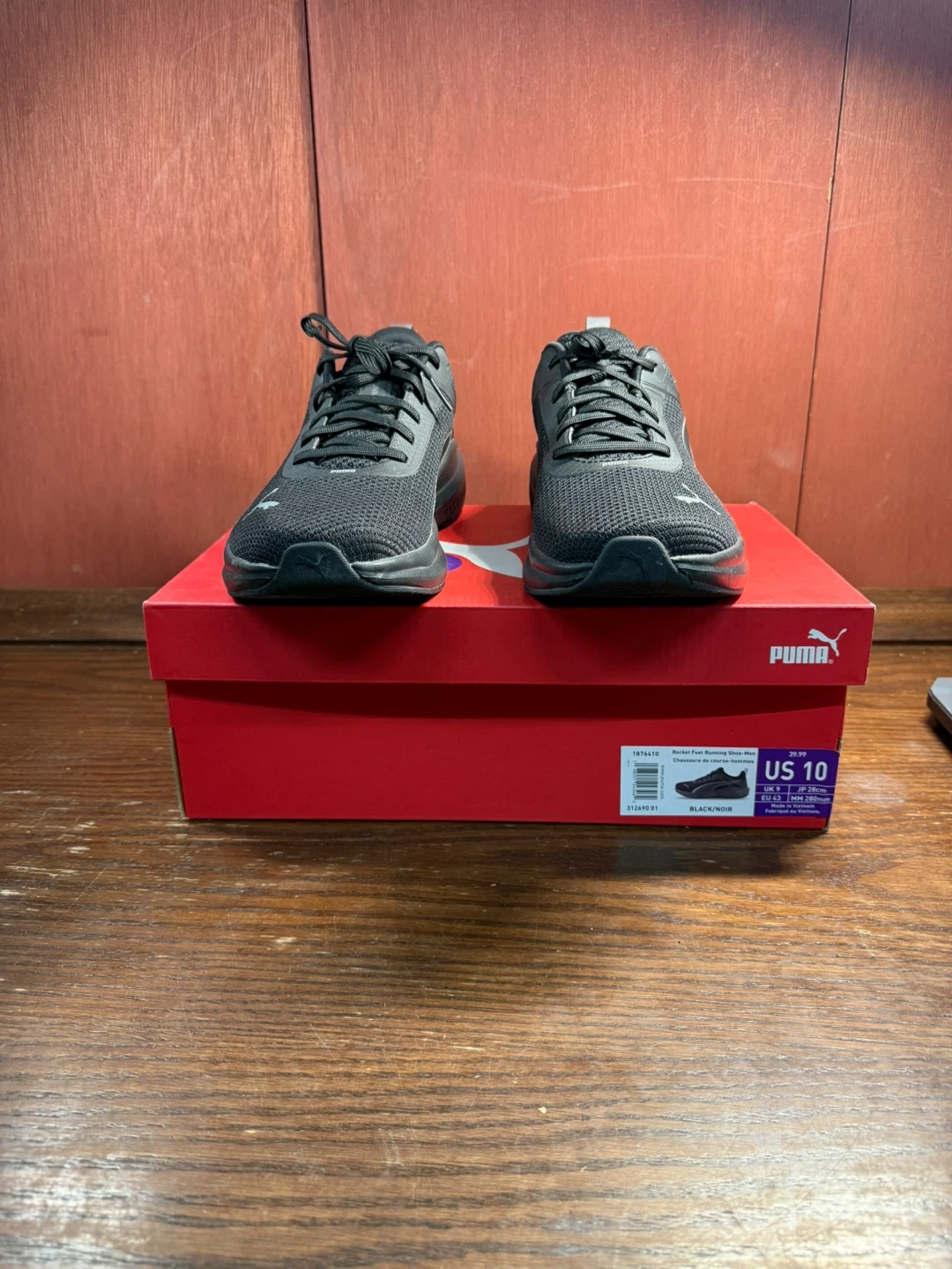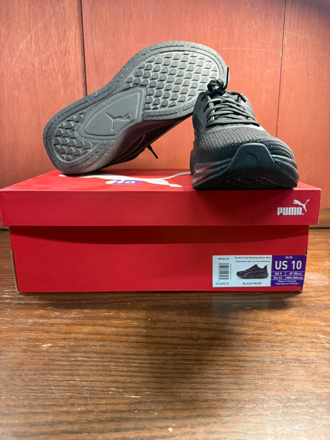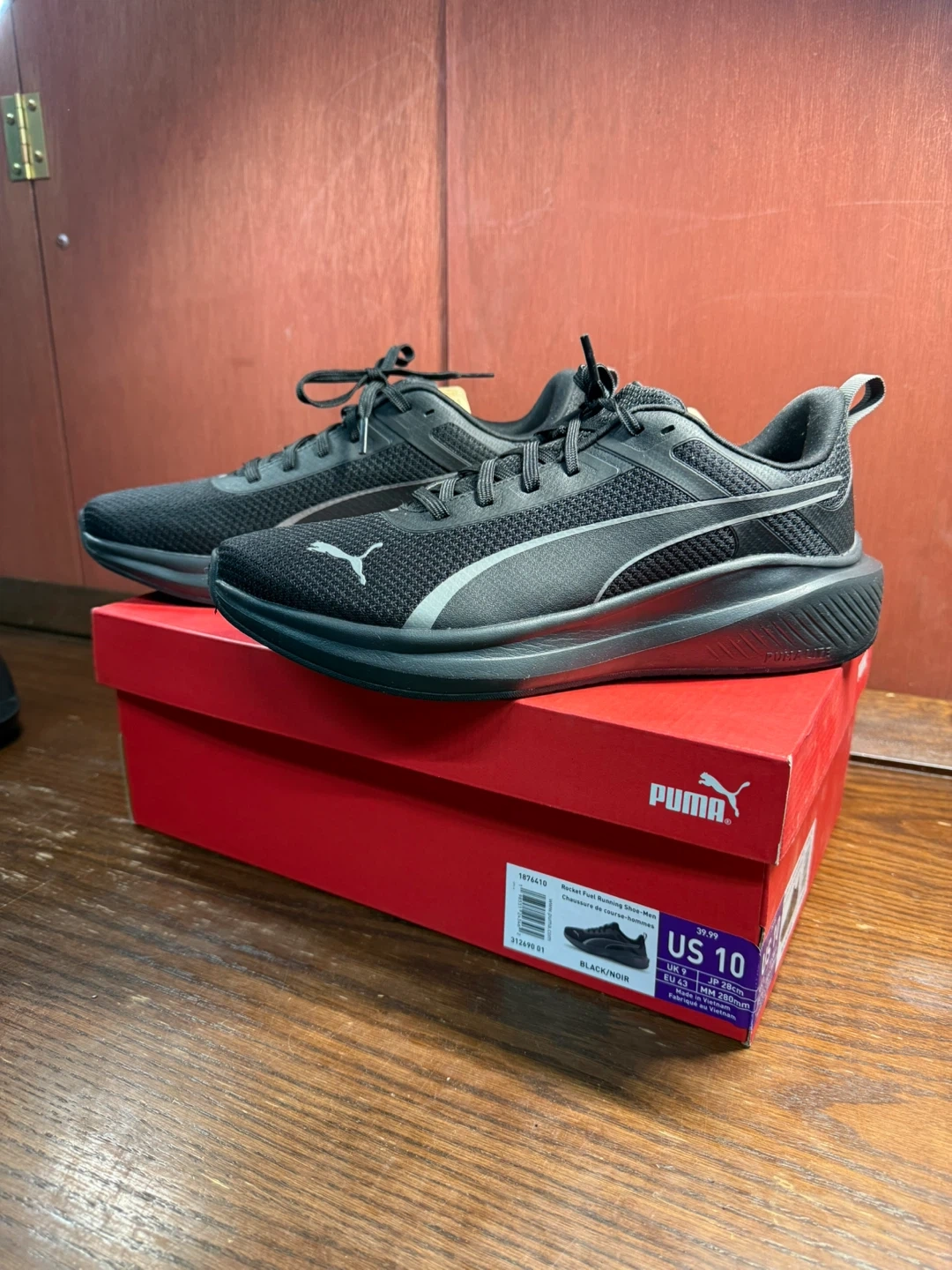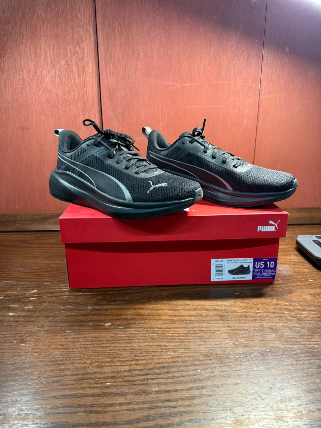Get ready to ignite your runs with these Puma Rocket Fuel running shoes, size US 10. These shoes are in used good condition, ready to add some pep to your step. The sleek black design is sure to turn heads while you blaze down the track or street.