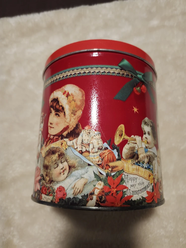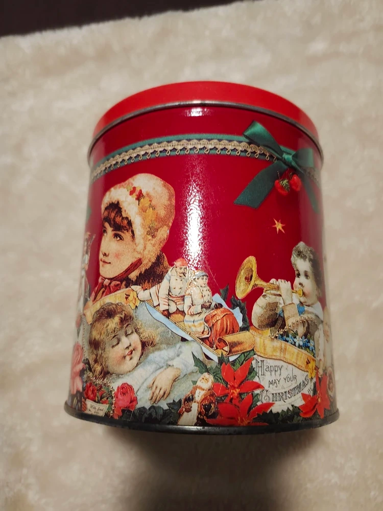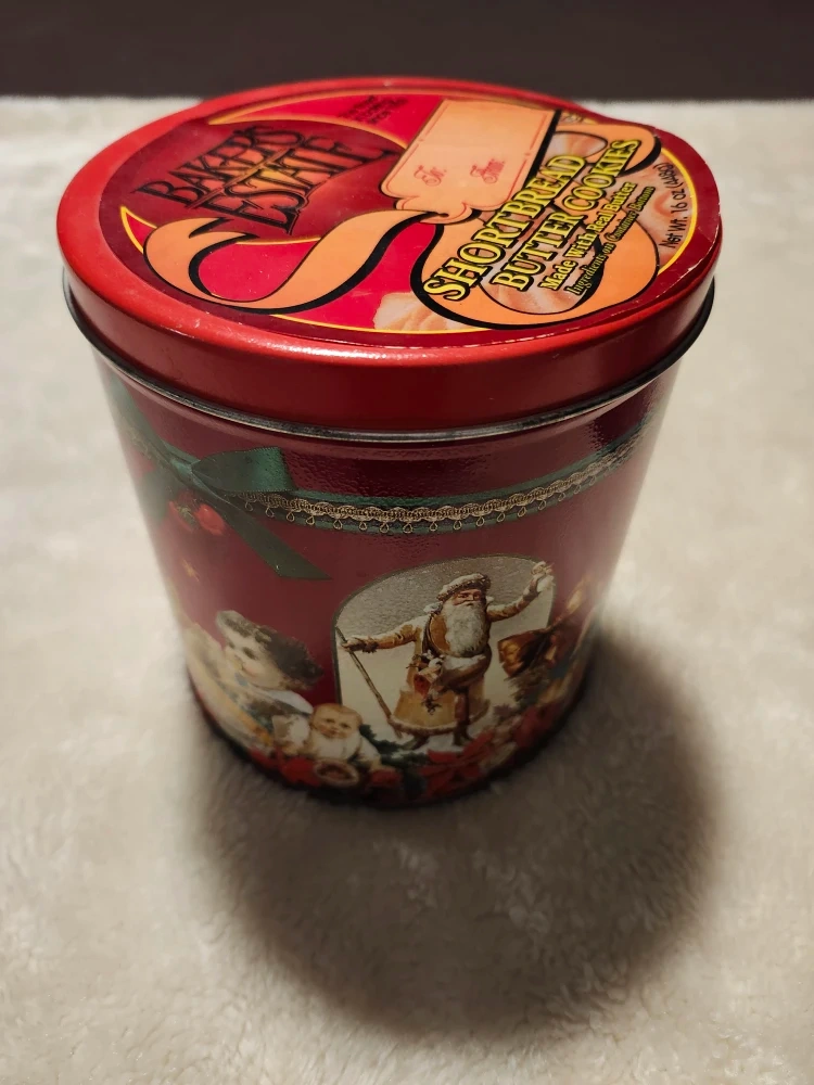 Selling a vintage Baker's Estate traditional shortbread butter cookies tin! It's a festive red colour and features a charming vintage-style print. Santa and more! Perfect for collectors or anyone who loves a touch of nostalgia