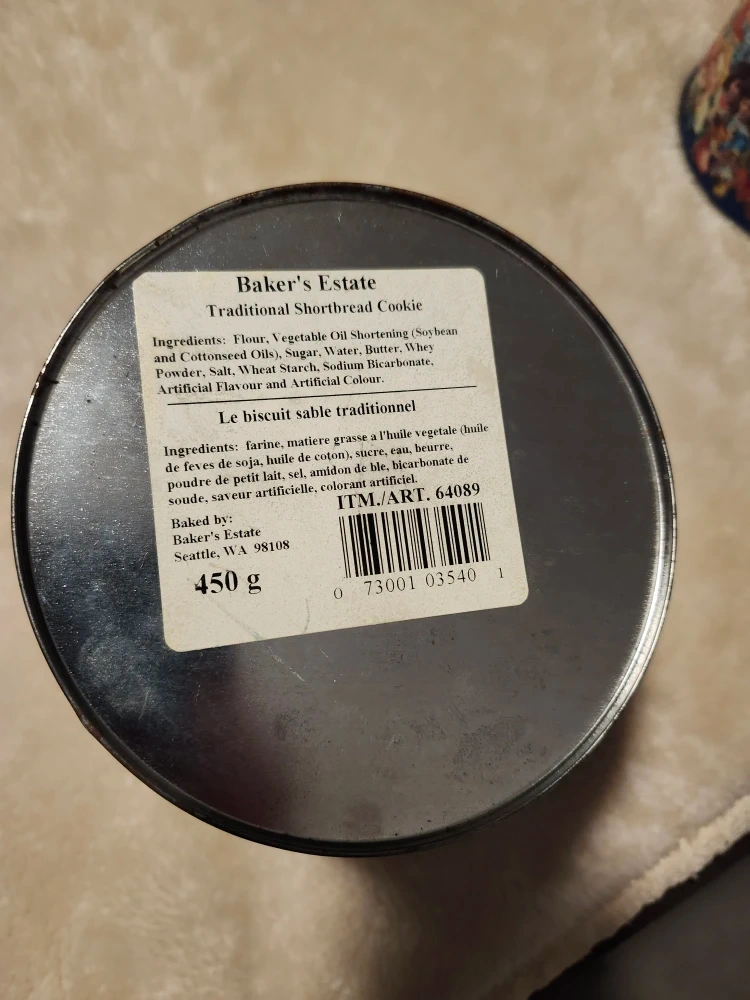 Baker's Estate Traditional Shortbread Butter Cookies Tin