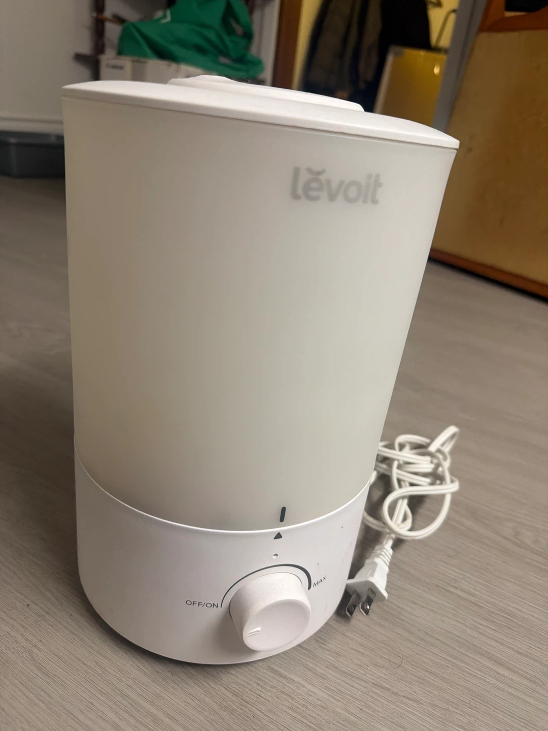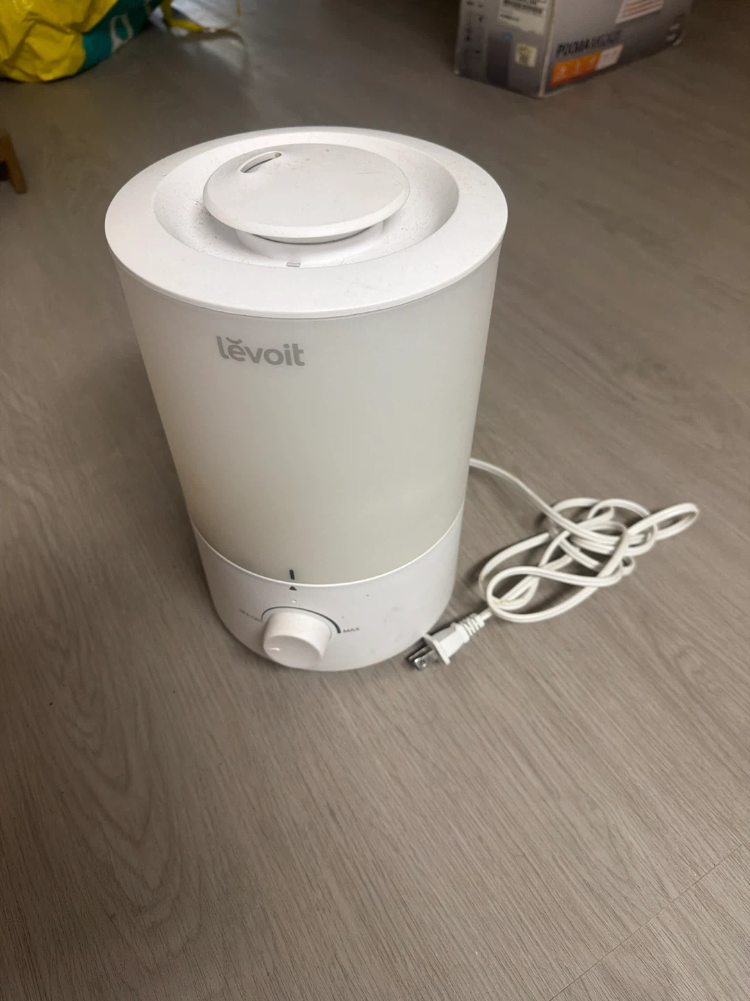 Selling a Levoit humidifier in great condition! It's white and perfect for adding moisture to the air during dry Canadian winters. It has a simple knob to adjust the humidity level and is easy to use. Works great!