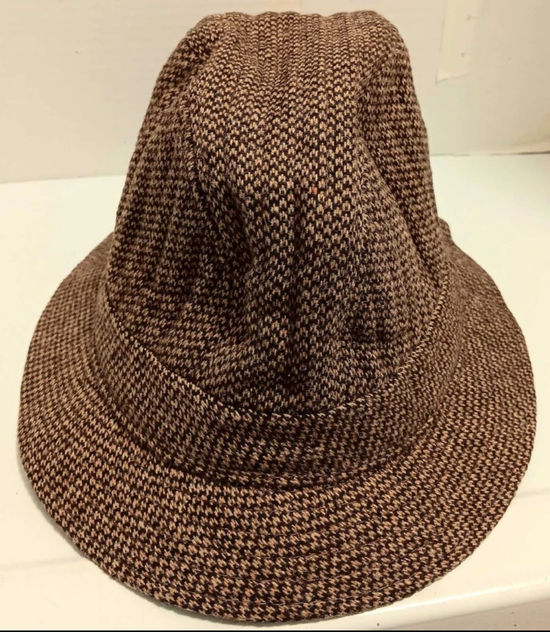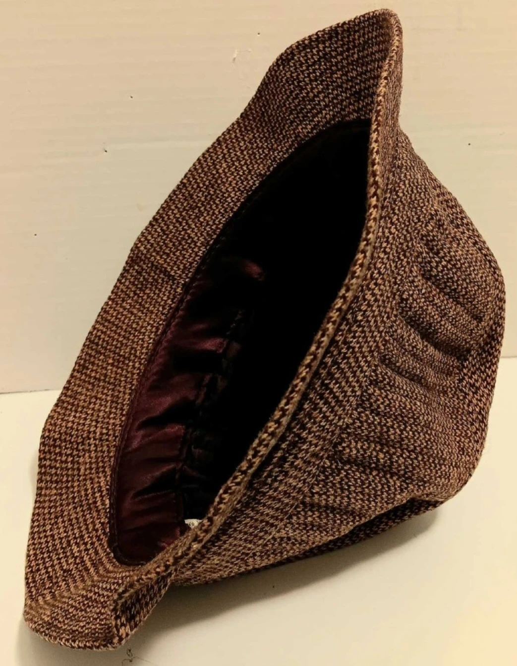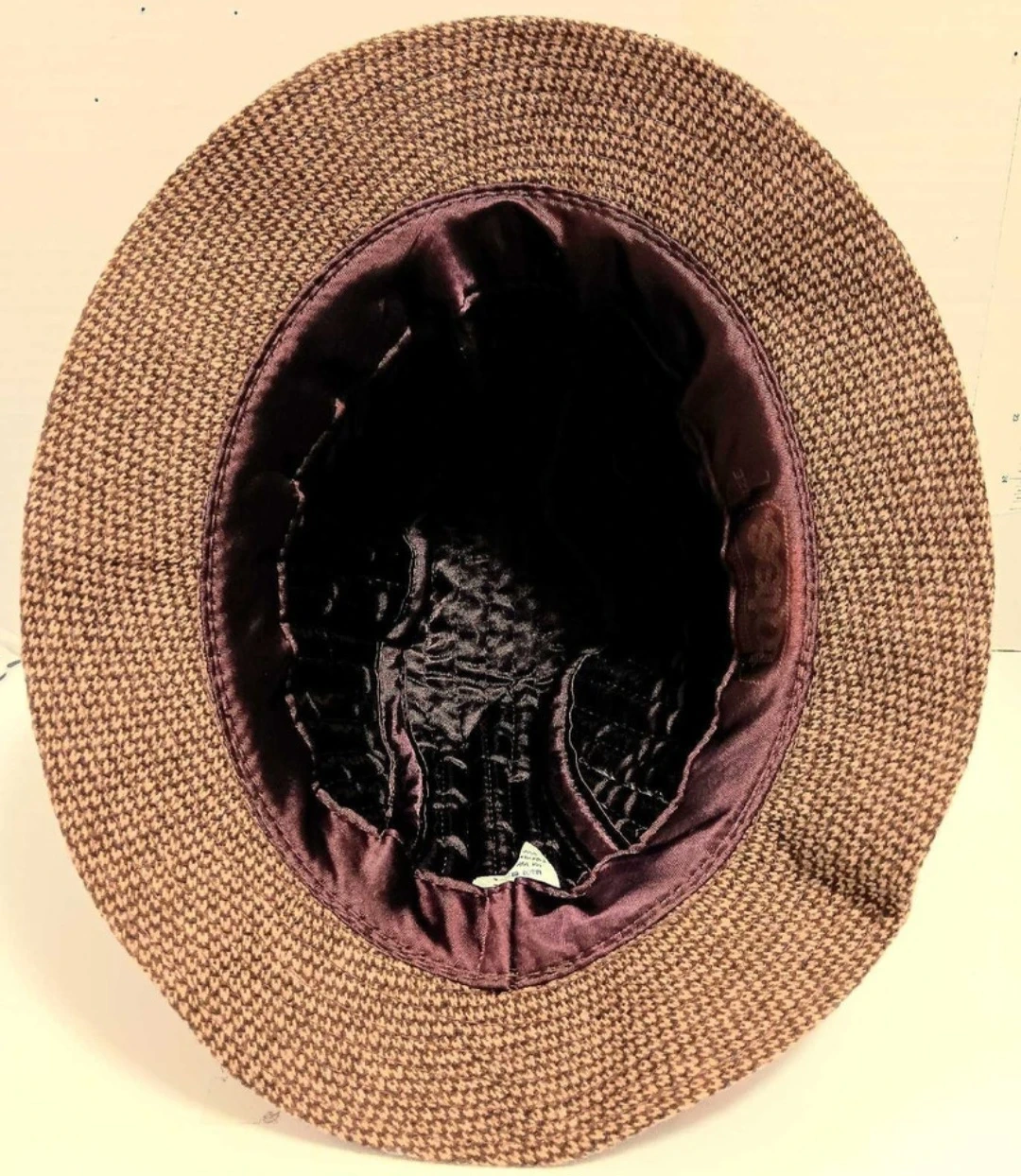 Elevate your style with this used Towncraft hat, featuring a stylish brown tweed pattern and comfortable inner lining! This hat is sure to turn heads wherever you go.