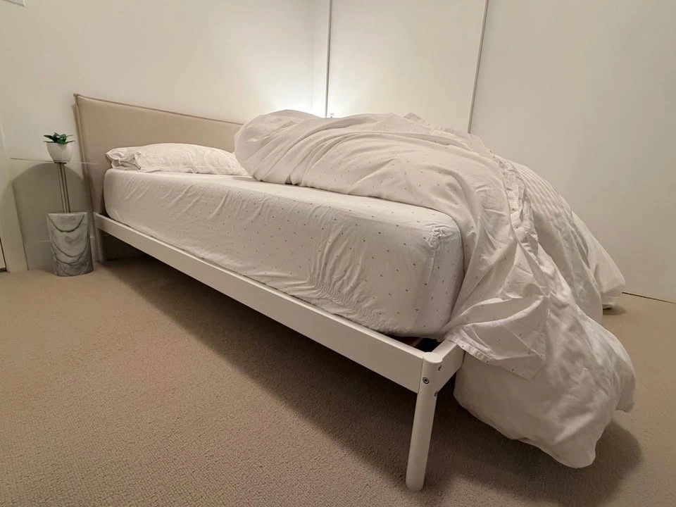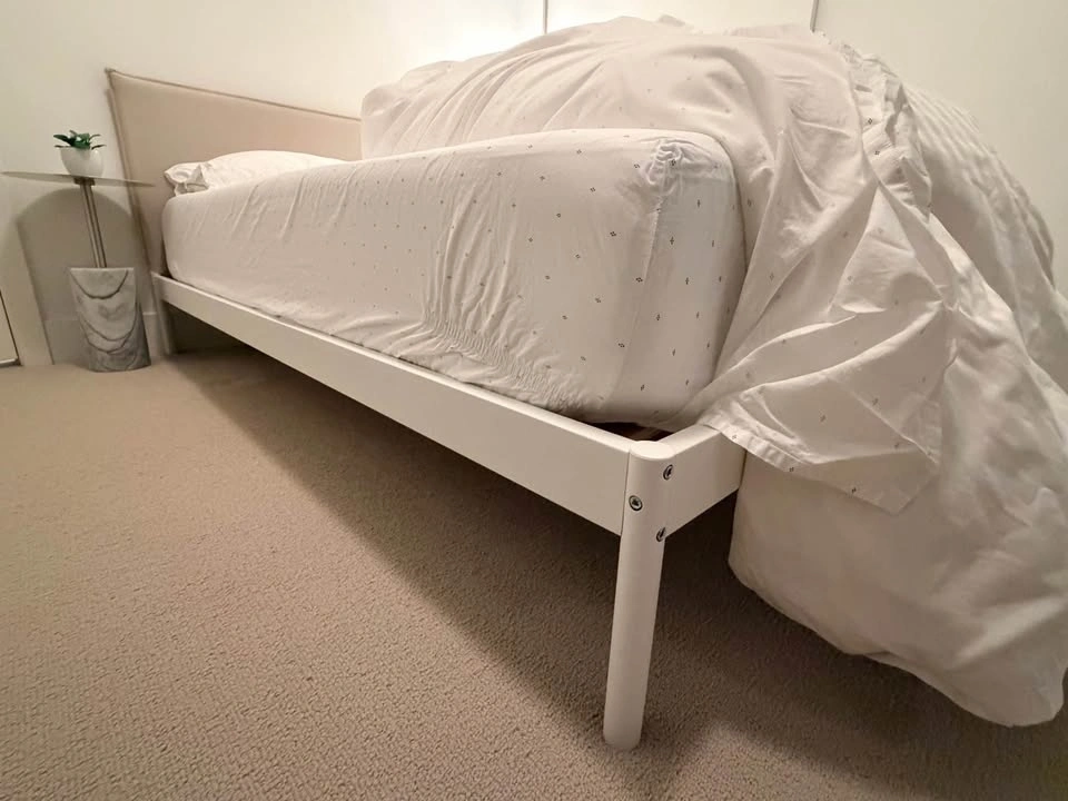 IKEA KLEPPSTAD double bed purchased in September and used one night only by 1 guest visitor. Very clean and in excellent new condition.