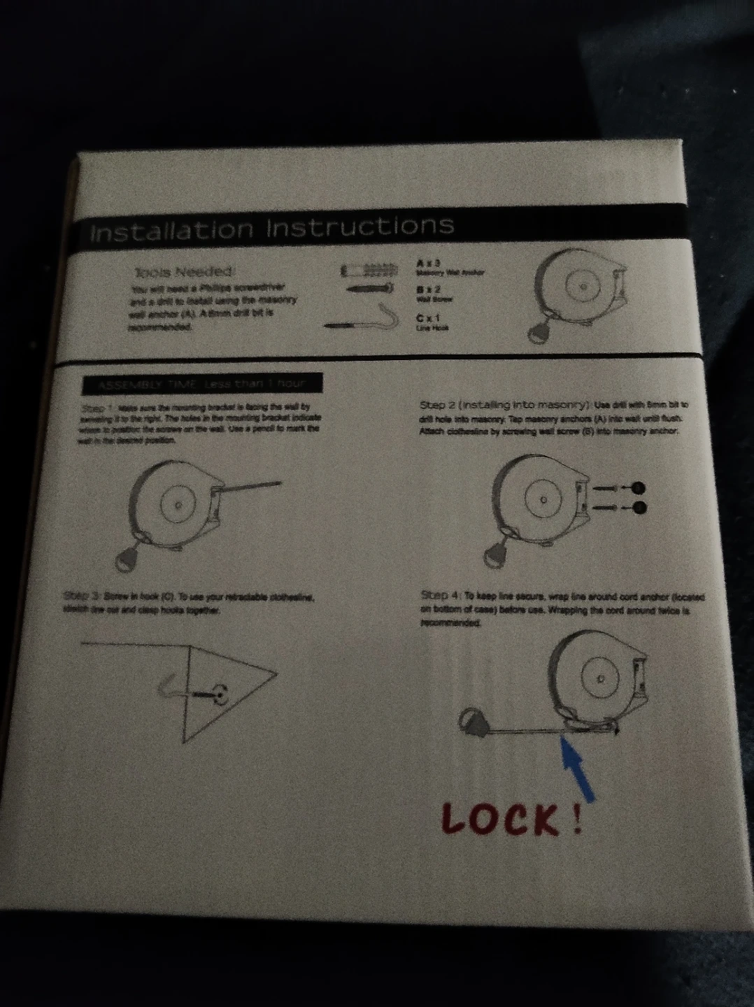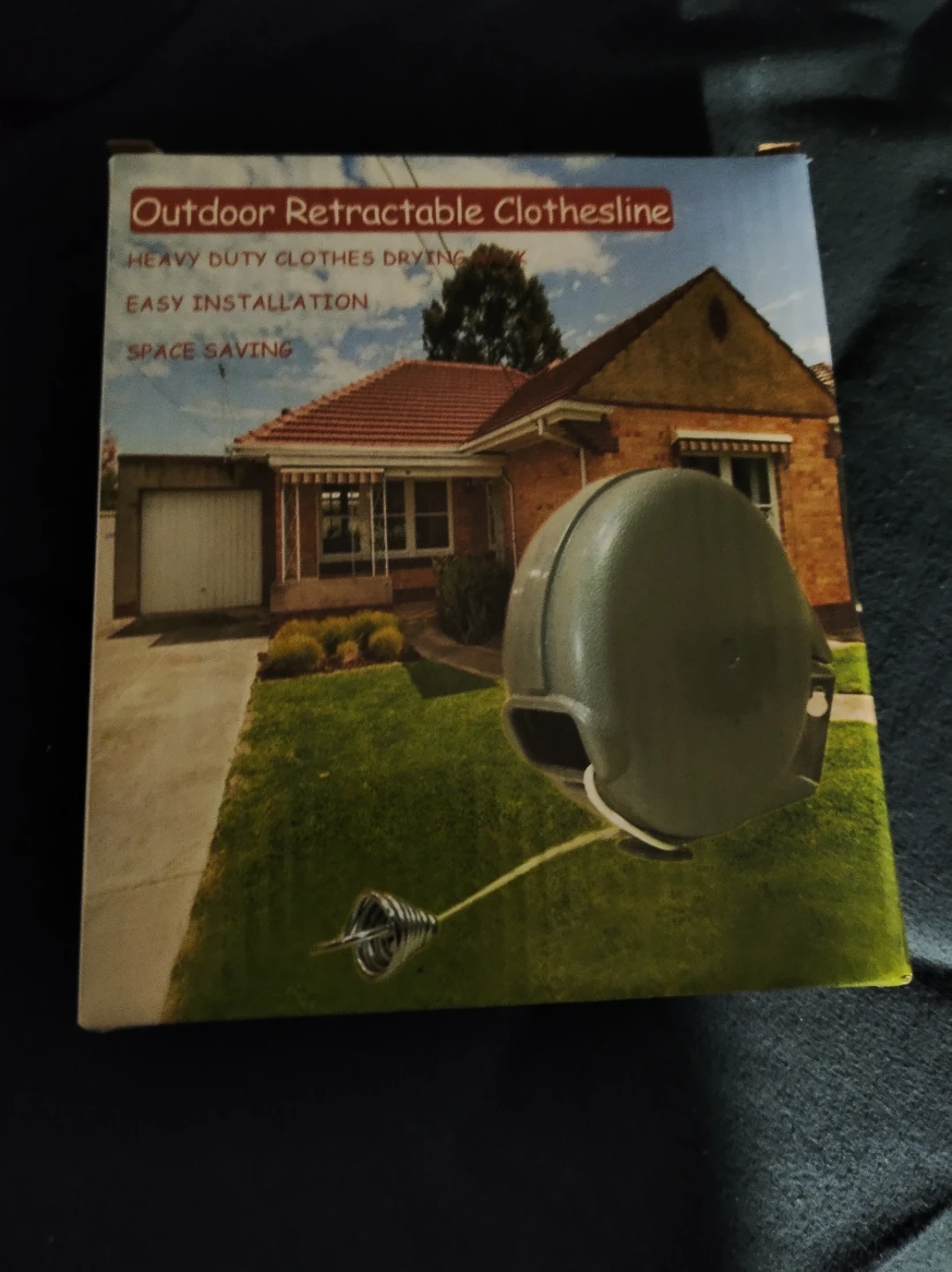 Selling an outdoor retractable clothesline. It's a heavy-duty clothes drying rack that's easy to install and saves space. The box includes installation instructions and all the necessary components for assembly