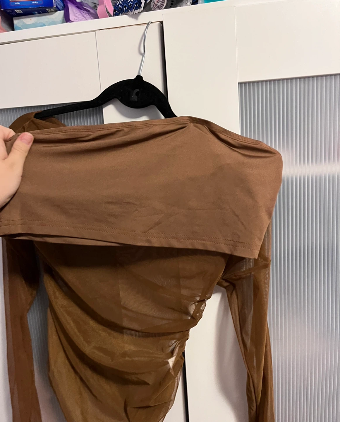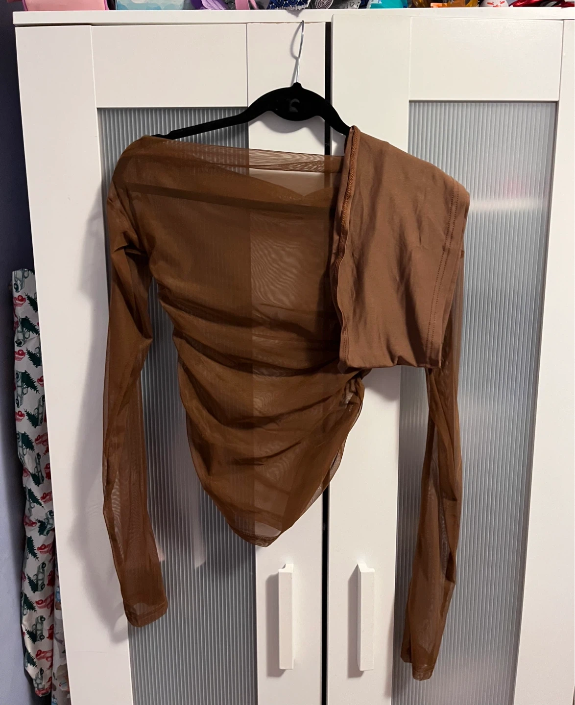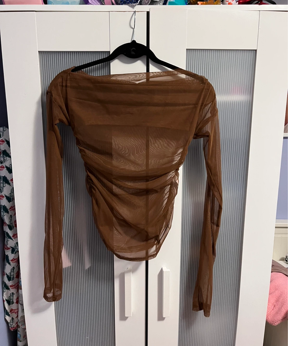 Selling a cute brown long sleeve sheer top! It's in great condition and would look great for a night out. The material is soft and comfortable. Size XS