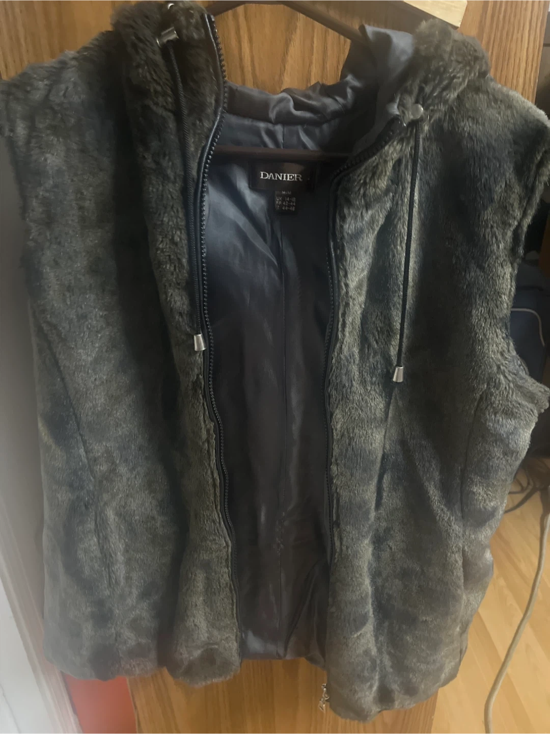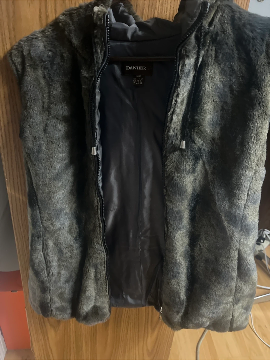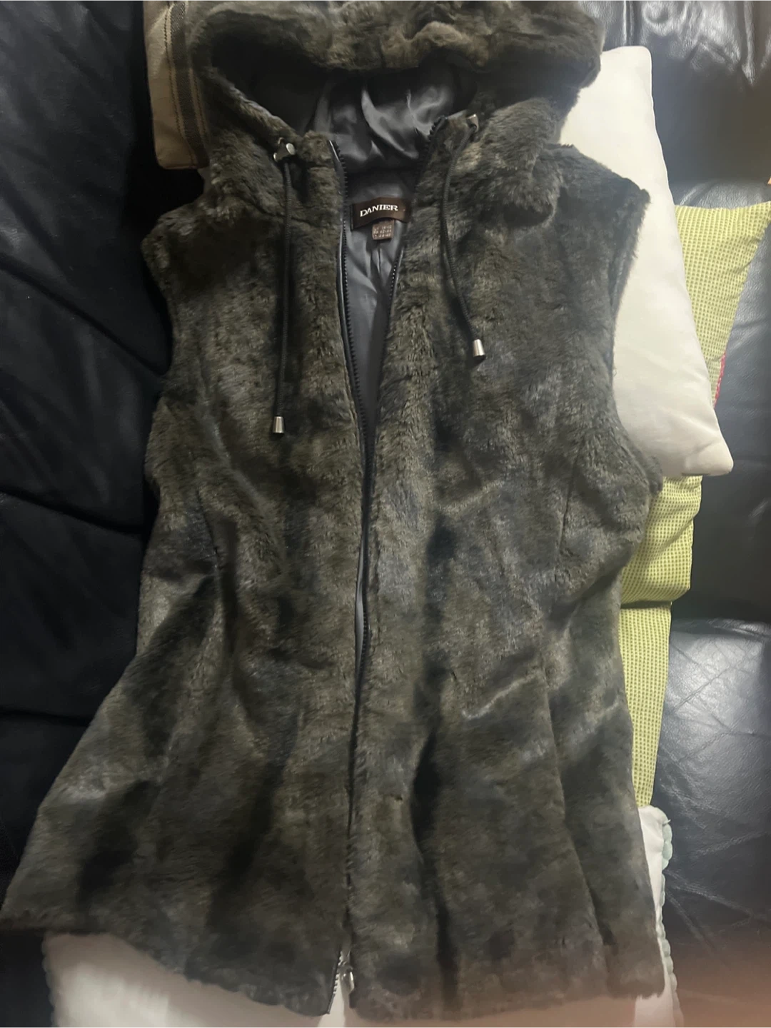 Selling a cozy Danier faux fur hooded vest in size medium. It's in great condition and perfect for adding a touch of warmth and style to your outfits!