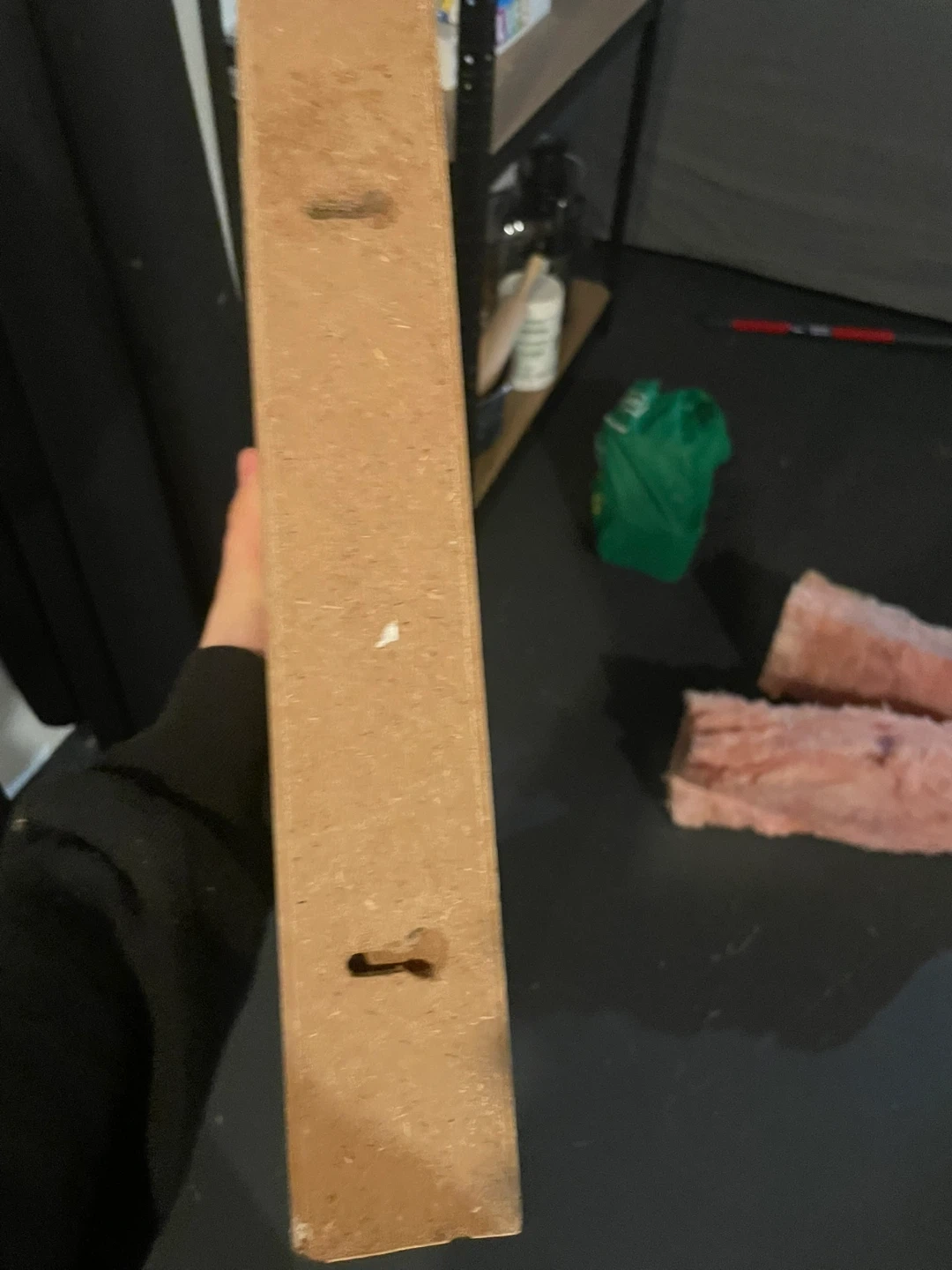 Selling a triangle-shaped shelf. It's made of wood and could be a great addition to any room. It has some pre-drilled holes for easy mounting