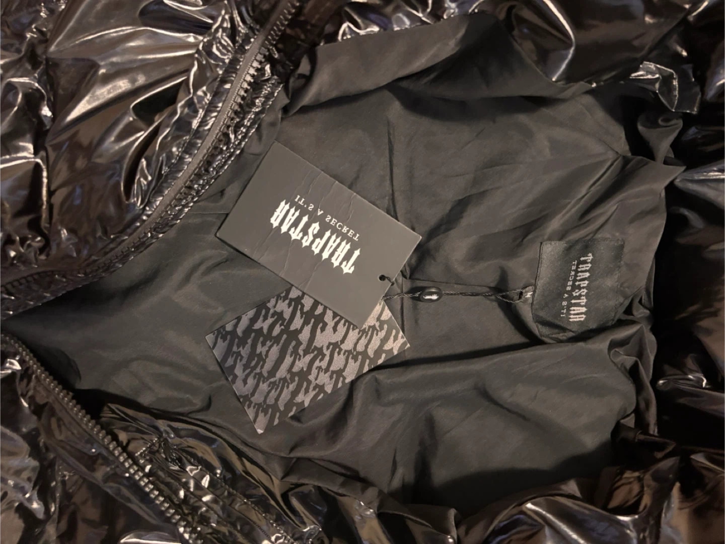 Selling a Trapstar Irongate puffer jacket in shiny black! It's in great condition and ready to keep you warm and stylish this winter. Features the iconic Trapstar logo detailing.